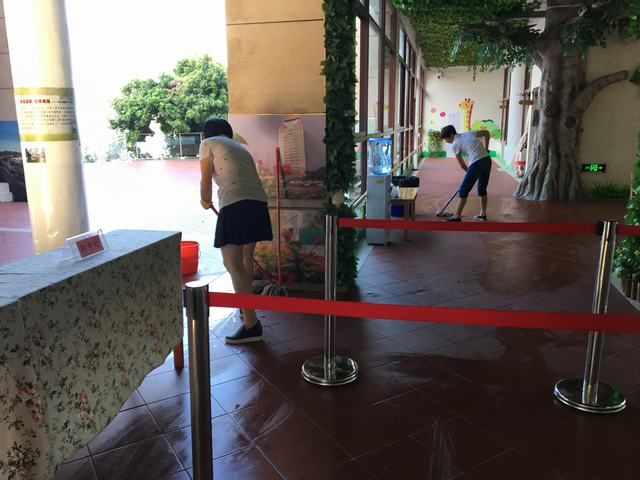 招生前一天,王园长主持招生会议,就招生当天流程、人员分组、具体工作做了详尽安排;并组织大家再一次深入学习招生简章、招生答疑等内容。为了向家长提供干净整洁、舒适宽敞、细致到位的接待环境与氛围,保洁组老师认真打扫园所卫生,悉心布置场地,还精心准备了纯净水、一次性纸杯供家长们取用。