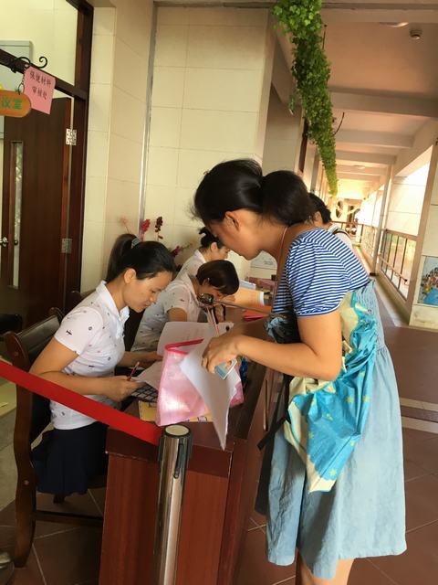 整个招生过程,家长们井然有序地排队、取号、报名。炎炎夏日,各岗位负责老师们用亲切的笑容,热情的服务迎接每一位家长。瞧,表格初审组老师们认真指导家长填写报名表,并耐心地解答家长们提出的每一个疑问。材料审核组的老师们细心审核报名材料,深怕漏审或误审一份材料而耽误了孩子报名上学,不敢有一丝懈怠。信息录入组的老师们也同样时刻保持着一丝不苟的工作状态,保证把每一个孩子的信息都录入完整。
