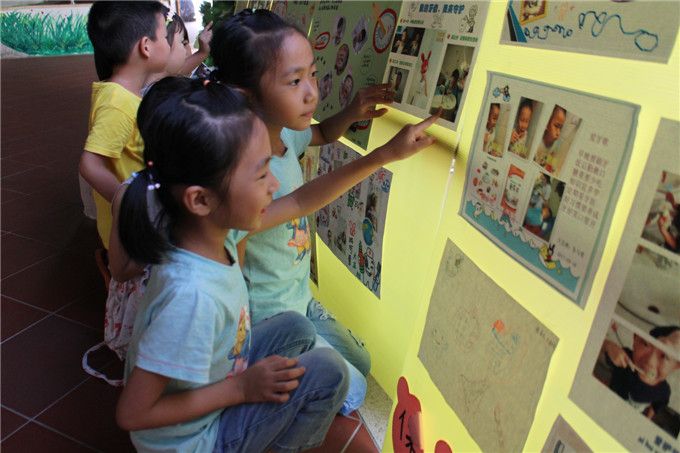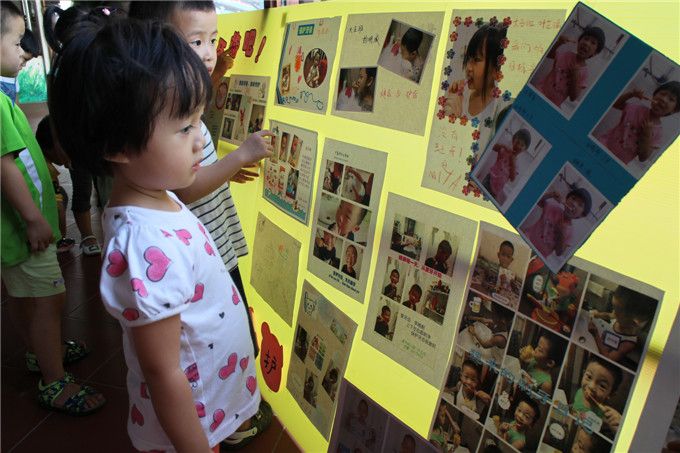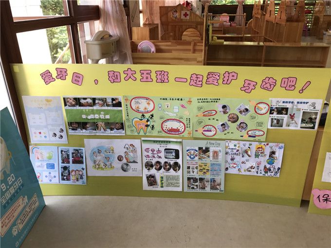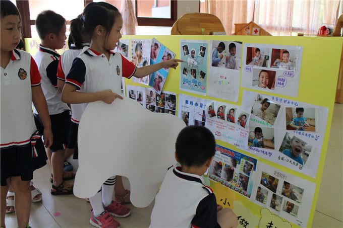 孩子们不仅自己学习了爱牙、护牙的本领,还要把这些本领分享给全园的小伙伴们!孩子们制作的宣传小展板展出喽,瞧!其他班级的小朋友也来驻足关注啦!“哇!牙齿上的小虫长这个样子啊,晚上回家我一定好好刷牙把小虫赶跑”、“没有牙齿什么好吃的都没法吃啦……”