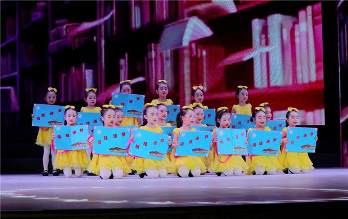 精彩来袭!舞台上的福娃们身着亮闪闪的黄裙子,身背老师们手工自制的小书包,挥舞着小星星,一招一式有模有样,一点都不逊色于大哥哥和大姐姐。精彩的舞蹈表演舞出了福娃们对祖国的热爱和感激之情,完美地诠释了《最美中国梦》,赢得了台下观众们的满堂喝彩。