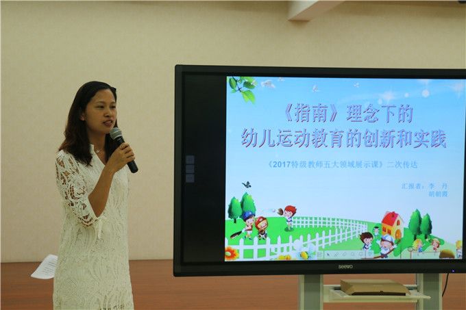 我园一群勤思好学的老师们前往福州参加《2017特级教师领衔五大领域精品展示课》的培训,近距离感受特级教师与众不同的教学魅力。同时还将上海市特级教师潘浩瀚老师关于《3-6岁儿童学习与发展指南》下幼儿运动教育的创新和实践活动与老师们进行分享。潘老师利用生活中常见的道具,椅子、红绸布,向老师们展示了一节节趣味性十足的体育游戏。