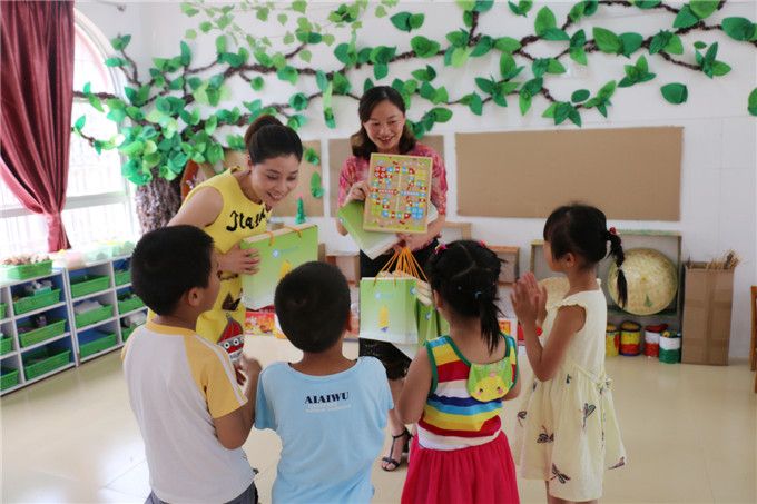 “客人老师好,客人老师好……”在孩子们热情地问好声中,美美老师拿出精心准备的“六一”礼物。