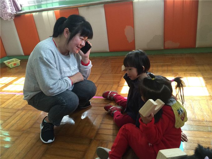 “叮铃铃……”谁的电话响起来了?“喂喂喂,你在哪里呀?”“哎哎哎,我在幼儿园。”原来是星星班的王老师正在和宝贝们打电话呢!