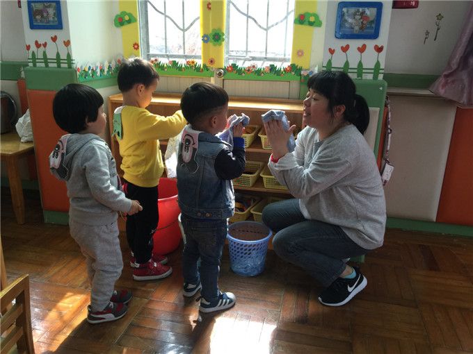 在早教基地,宝贝们每日的生活过渡,老师们都会紧紧跟随。上完厕所,宝贝们随意拉扯的衣裤,会在老师们的帮助下变得整齐清楚。