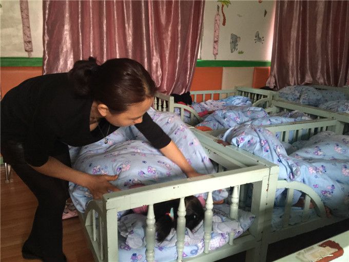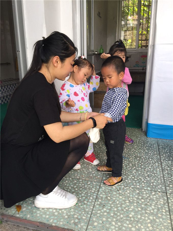 午睡时间老师们都会仔细地查看宝贝们的被褥是否盖好,起床后及时地帮助宝贝们把衣服穿好。
