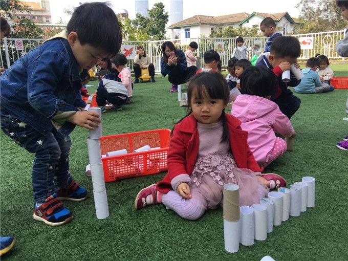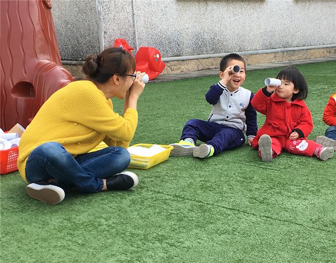 “嗨!你好呀!我看到你啦!”小纸筒变“望远镜”喽!这边,苗苗班的萌宝们从家里带来了许许多多的纸筒,和杨老师一起正在用它们变魔术呢!