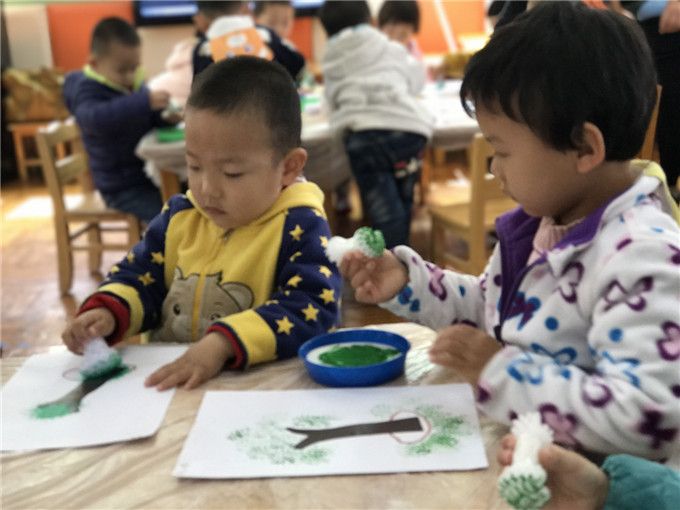 勤老师告诉我们:好宝宝要爱护小树苗。瞧,我们画的小树苗直起了腰,快乐地对着我们微微笑呢。