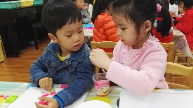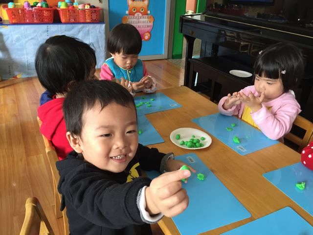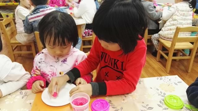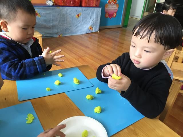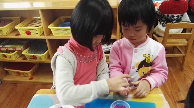 菠菜汁、胡萝卜汁和着糯米粉,在奶奶和妈妈的帮助下,变成了彩色的面团。再经过小班萌娃稚嫩的双手中,变成了一个个五彩的小珍珠。