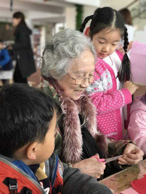 看,这些慈爱、能干的奶奶,做起手工来还是那么的灵巧。福娃与奶奶们边做边聊,亲密无间,活动中始终洋溢着一股暖暖的温情。