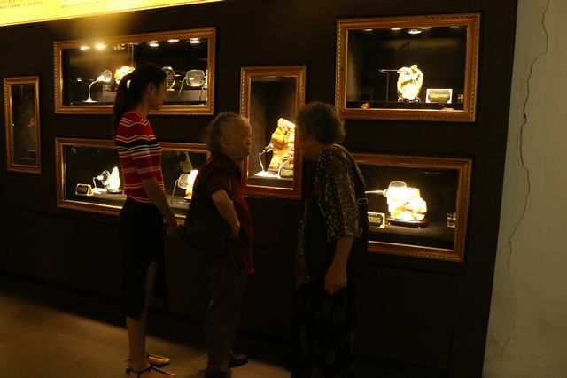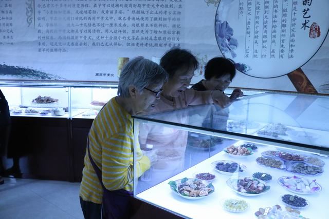 年轻朝气的幼师与慈祥和蔼的“老师奶奶”们,一边轻声细语交流,一边驻足欣赏……文景相融,石艺双绝的艺术园里,微雕大师的作品令人震撼,不同年代幼师们的重阳节共度,同样是一道靓丽风景线。
