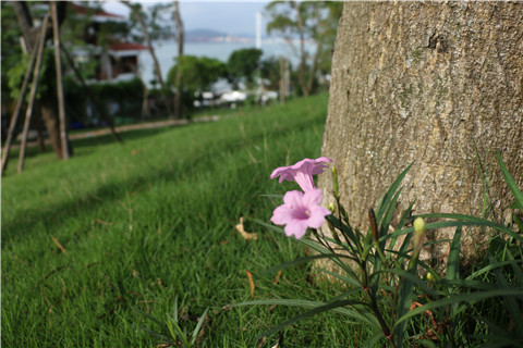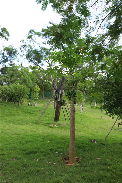 那棵被台风吹倒的木瓜树,此刻依旧这般挺拔俊俏;那些被台风吹走的花儿,陆陆续续回来了,红的、黄的、紫的、白的……遍布满山坡!