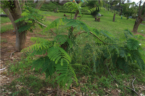 更有这棵神奇的“树坚强” —— 已经仅剩下一米高不到树干,斜枝旁溢,长出了几支长长的枝丫,枝丫上茂密的嫩嫩的凤凰叶子,那样翠绿晶莹,那样生机盎然。估计很快,小朋友们躲猫猫时可以躲在这个树冠底下了哦!
