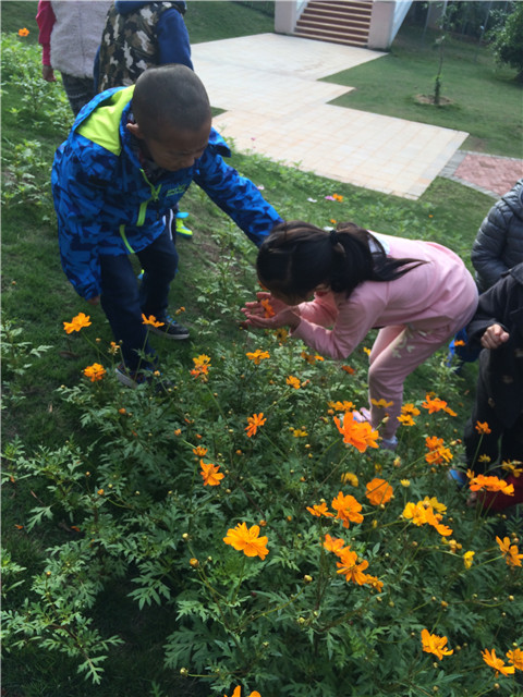 沁人的桂花香味,远远的就飘入了小朋友的心里:“老师,我好喜欢这个味道哦”,老师:“孩子,那是桂花的香味,让我们再去找找,哪里还有好闻的、好玩的……”