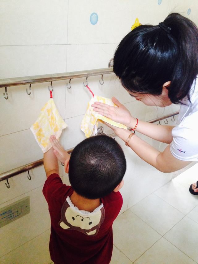 爸爸妈妈,这是我洗手手的地方,然后在这里把手手擦干净,还有还有哦,喝水的地方、睡觉的地方、拉粑粑的地方……我都记住了,爸爸妈妈你们记住了吗?