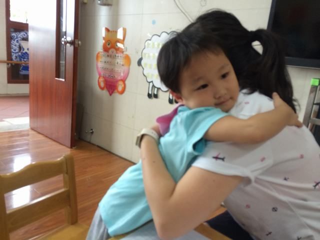 仅仅半天时间,已经有些孩子“爱”上老师了,他们在爸爸妈妈的引导下,大方和老师拥抱,并且明确表示“老师,我还可以再来玩玩吗?”——哈哈,亲爱的宝贝,老师很愿意很愿意、很盼望很盼望你愉快地到幼儿园来玩玩!