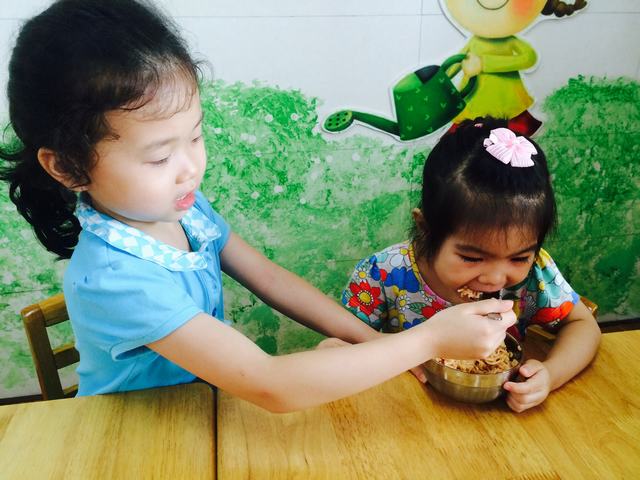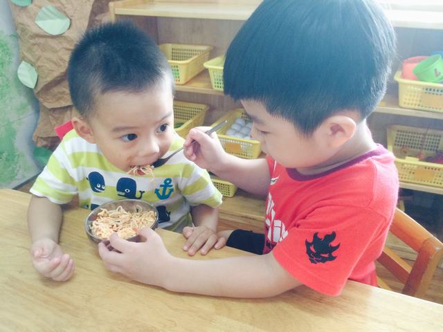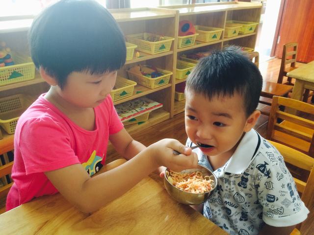 不哭不哭……姐姐喂你吃饭吧,吃完就可以回家了耶!