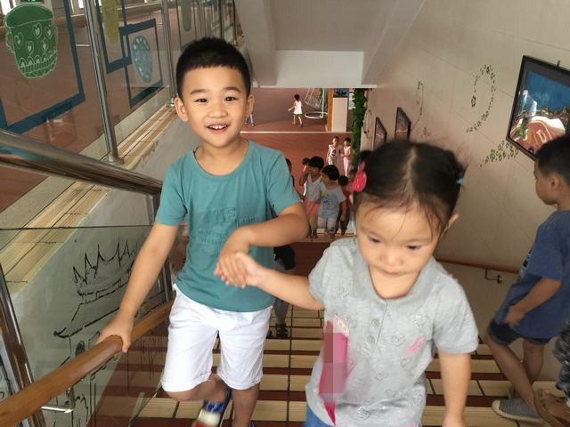 快乐的一天,从入园开始哦,从小班老师手中接过懵懵懂懂的小萌娃,抱抱、亲亲,关切的询问着,细心的观察着,“紫色布条,哦,是小五班的宝宝”“走 ,姐姐带你去班级!”“小心楼梯,慢慢走哦……”