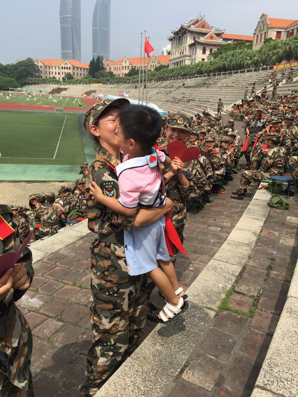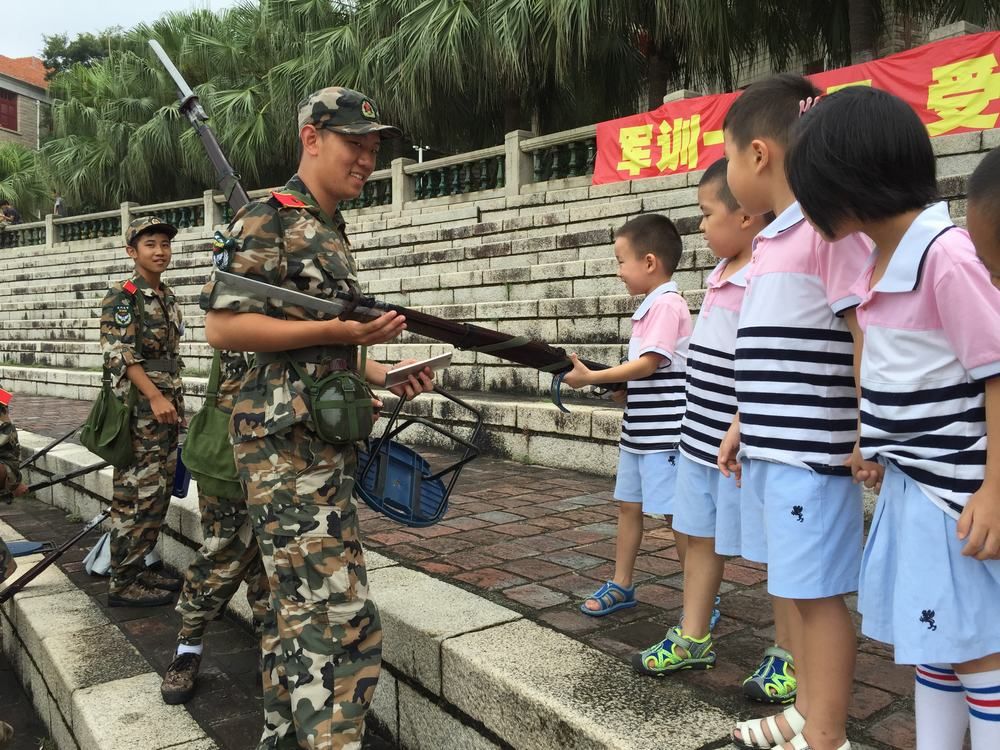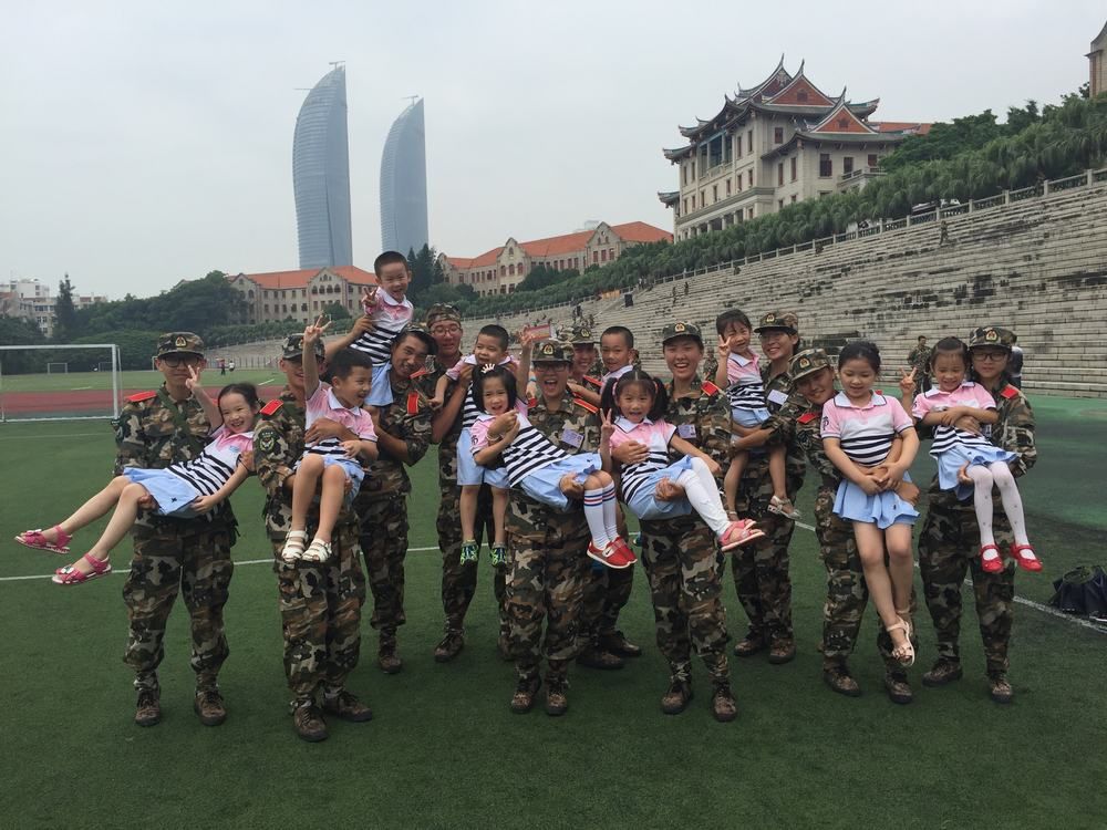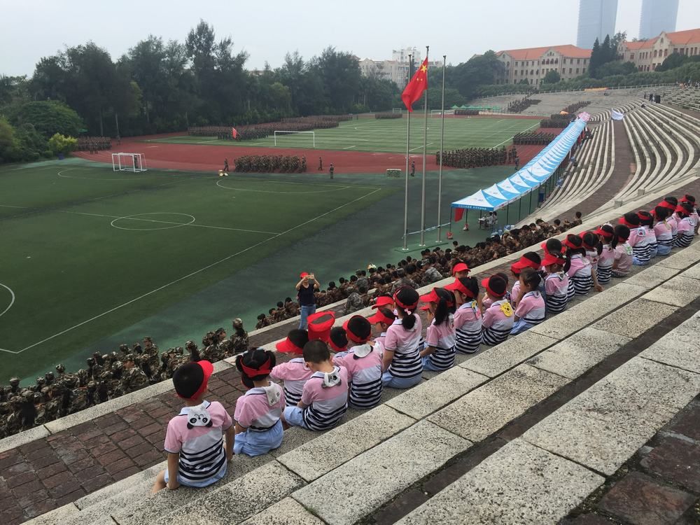 金秋九月,厦大上弦场上,大一新生的军训生活如期进行着;看台上,观战鼓掌的,则是厦大幼儿园大一班的小娃娃们 —— 哇,哥哥姐姐都是真的解放军噢!?