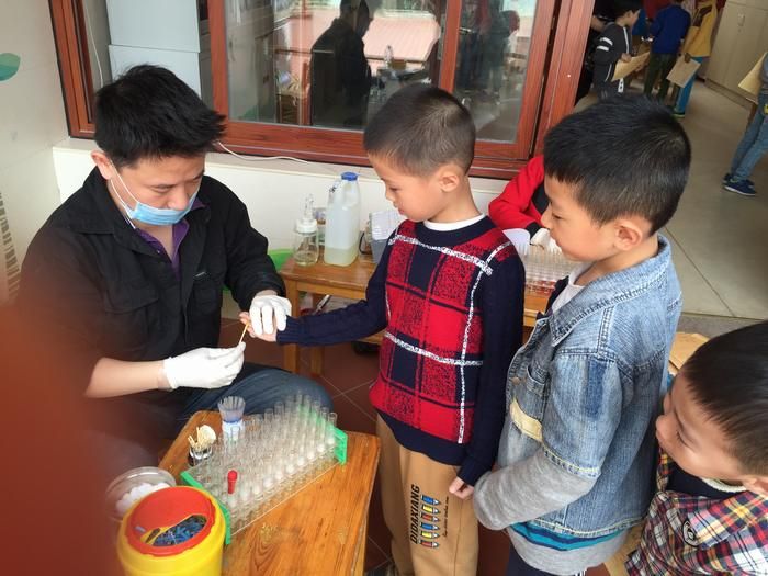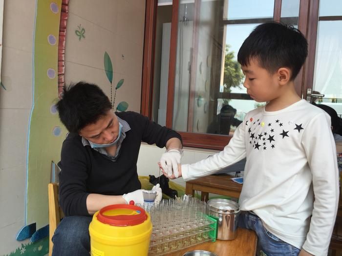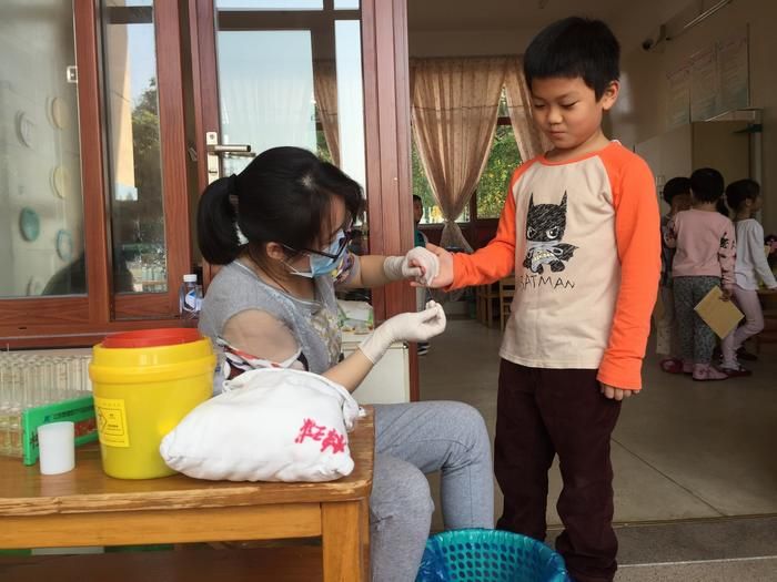 体检的项目有点多哦!心肺听诊、血红蛋白的检查、牙齿检查等等,还要采血!检查前老师告诉孩子们这是个勇敢者的“游戏”,会有一点点的痛,一丝丝的害怕,但是勇敢的小朋友一定会克服自己,勇敢地将小手伸给医生,经过班级老师对体检事项的讲解,孩子们也认识到体检是为了更加清楚了解自己身体的健康情况,看!轮到检查的孩子们井然有序地排好队,互相鼓励,积极配合;医生们分工明确,态度温和,对每一位幼儿的检查都做了详细的记录,体检中不时地听到医生们用和蔼的声音对听诊器有所畏惧的孩子说:“不要紧张,医生阿姨和你打个电话哦”,对采血检查害怕的孩子说:“挑个最小最小的针,轻轻地像小蚊子叮一下……”医生们对每个孩子都认真、细致地做了全面检查,并将体检的结果填写在幼儿的体检卡上。与此同时孩子们的表现得到了医生们的一致好评。