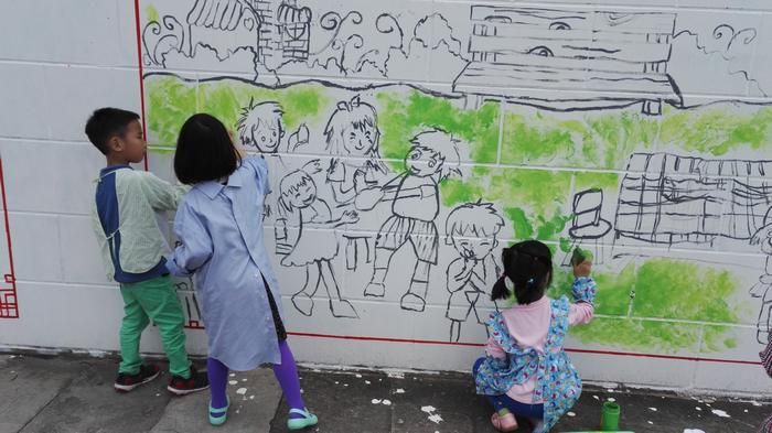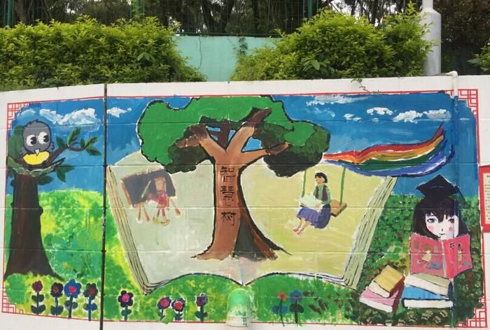 一排不怎么好看的围墙,被老师们用丙烯颜料涂了一遍又一遍