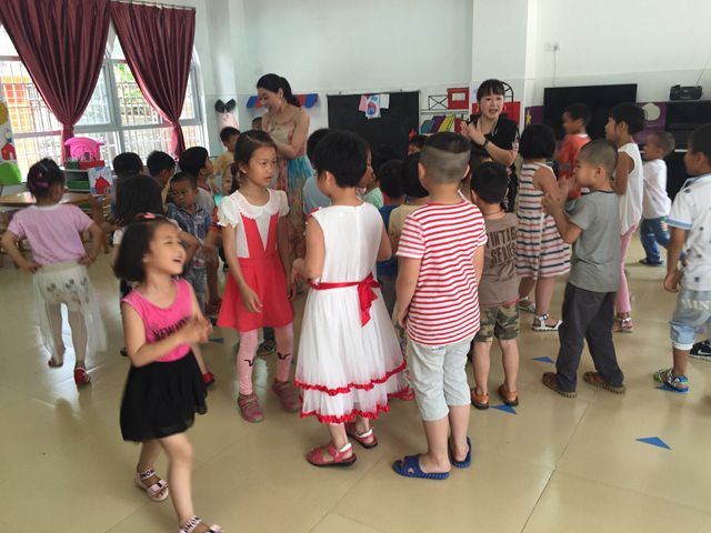 不过,气氛很快就无比融洽了——在“找找找呀找朋友,找到一个好朋友……”的悦耳乐声里,老师和孩子们一起玩起了游戏,陌生感很快就消失了,孩子们开始发声和兴奋:“客人老师好,客人老师我要和你找朋友”