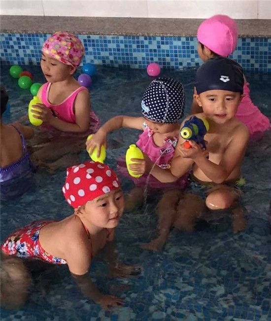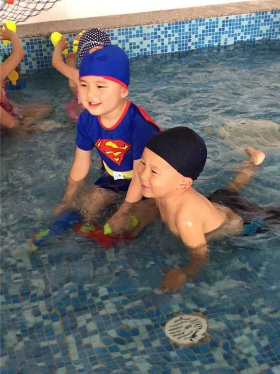 “小小游泳健将们”在老师和志愿者爸爸妈妈的带领下排着整齐的队伍来到了游泳池。认认真真的做起了准备运动,看,我们的动作标准吗?准备运动结束之后,小朋友们一个接着一个井然有序地跃入泳池。瞬间,游泳池就洋溢起一张张花一样的笑脸,真是可爱极了!