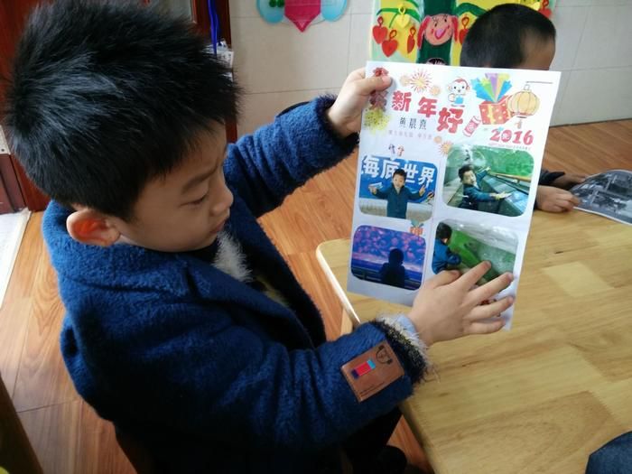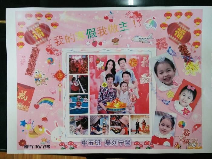 瞧!牧远小朋友的海报还有对联呢——上联是“写字画画认地图一样都不能少”,下联是“过新年放烟花有同学玩真好”横批:“新年好”——把自己愉快而忙碌的寒假假期生活生动地表达出来。长大了一岁,孩子们更有主见了。宁馨妈妈说,海报上的照片都是孩子自己挑的,寒假里宁馨参加了才艺大赛获得了好成绩,这些经历都是她难忘的。萱儿则是把自己寒假在家里帮妈妈当“小帮手”的情形拍了出来:洗碗、拖地、贴春联,样样事儿都会做。