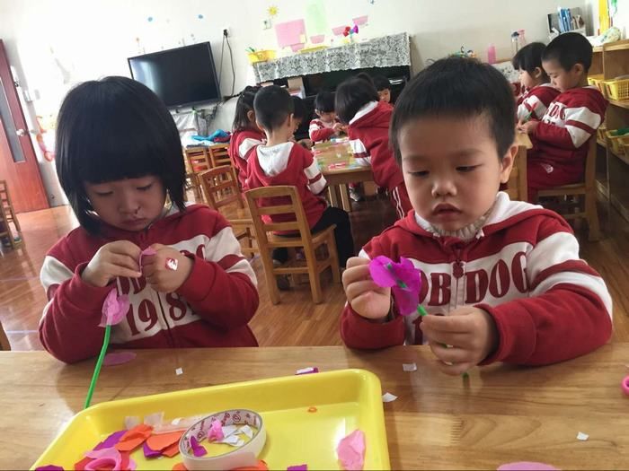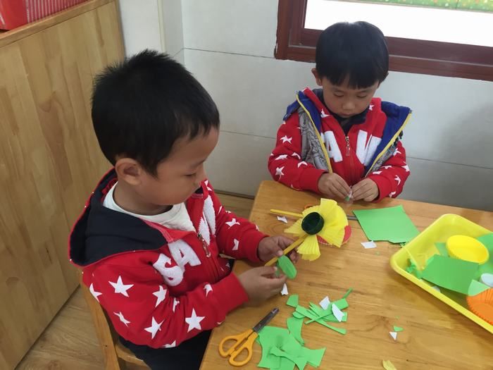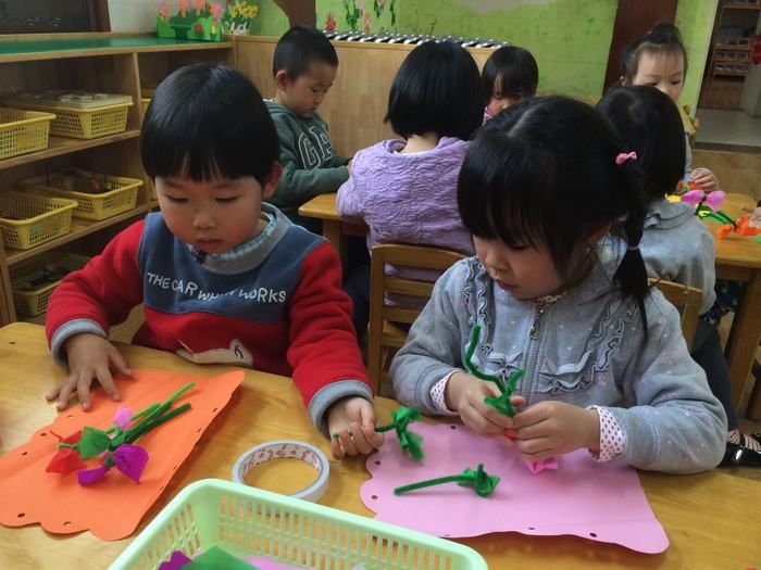 快看!小一班,小七班的小朋友们也正在利用各种材料制作美丽的花儿。妈妈们!这么漂亮这么环保的花儿,你想不想收藏起来呢?