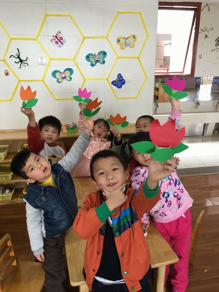 中5班的哥哥姐姐用纸和笔,画出了他们心中最美的花儿——郁金香,送给自己的好妈妈。而中2班的小朋友则是运用了剪贴的方法制作出一幅幅美丽的画。