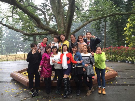 才下过雨的植物园里,空气显得格外清新,渴望亲近大自然的女教师们,顺着台阶一路上去,她们三个一群,五个一伙,边说边聊,甚是欢乐。有的甚至打趣地说“飘着绵绵细雨,别有一番浪漫情调”!大家纷纷在这独具韵味的“自然界”里拍照留恋。老师们或凑在一起泡茶闲话家长,或几个几个结伴花丛中拍照,或彼此打趣玩笑逗乐……场面好不热闹!老教师们看到年轻老师不禁感叹“年轻真好”,而年轻教师在老教师的感染下也不禁赞叹“将来我们也要这样精彩”!