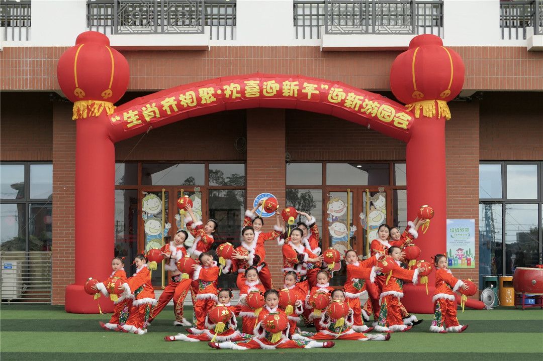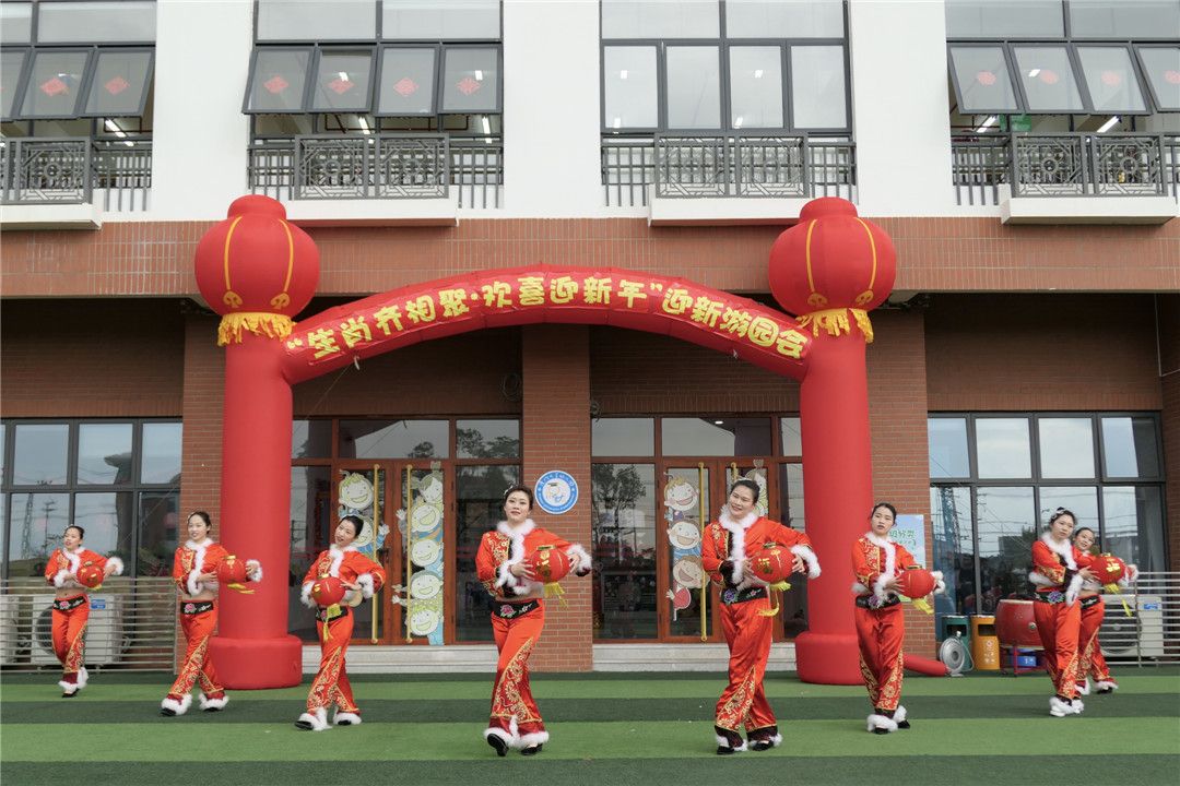 “过年啦!”随着音乐声响起,福娃和老师们身着充满节日气息的红装出场了。锣鼓喧天、年味十足的表演拉开了迎新年游园会帷幕。