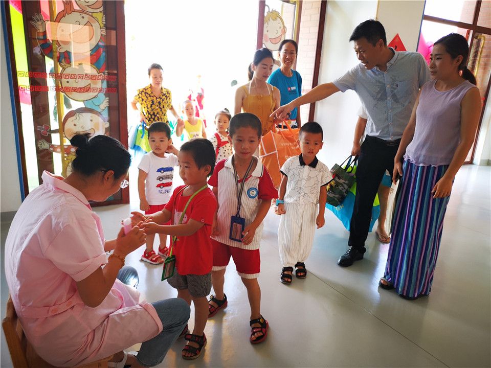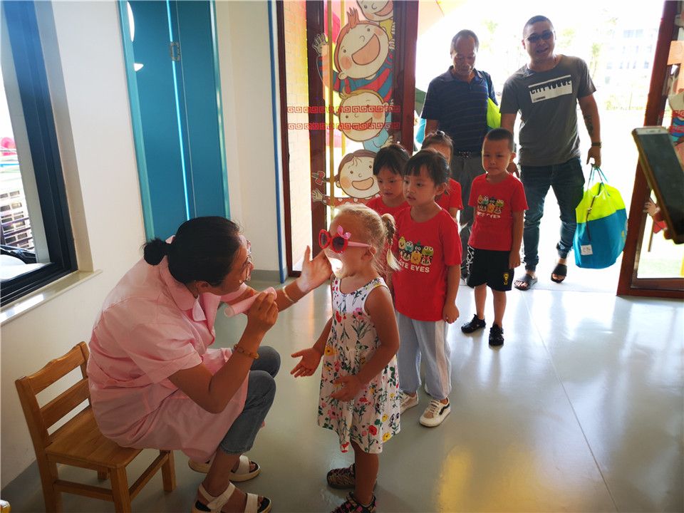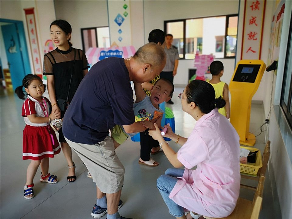 开学啦,中大班的哥哥姐姐们,个个自信满满,有序地排好队,接受医生的检查。