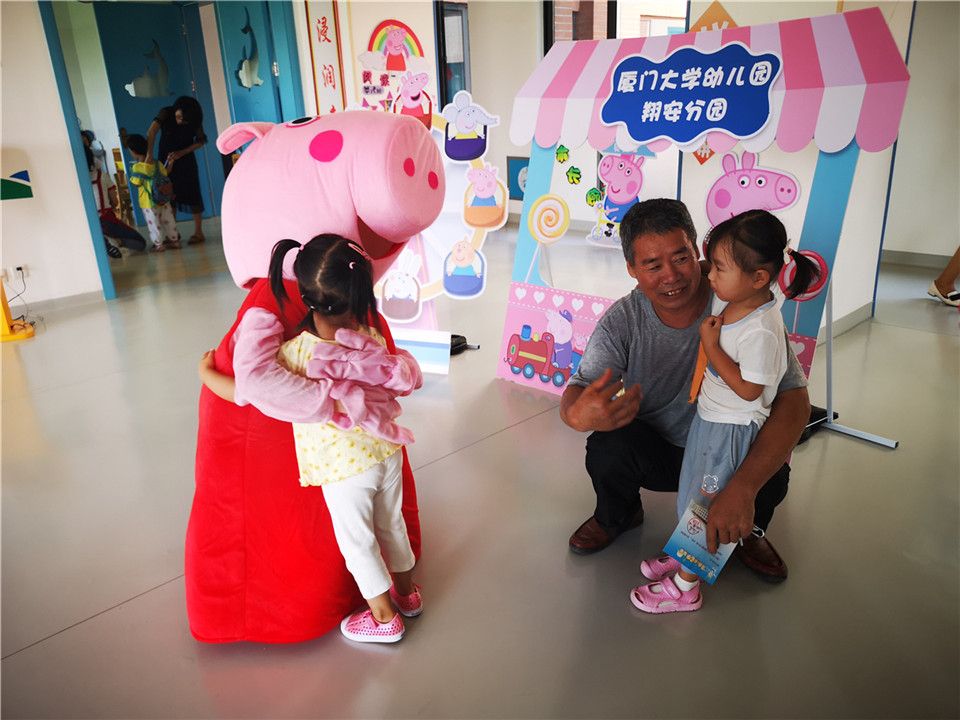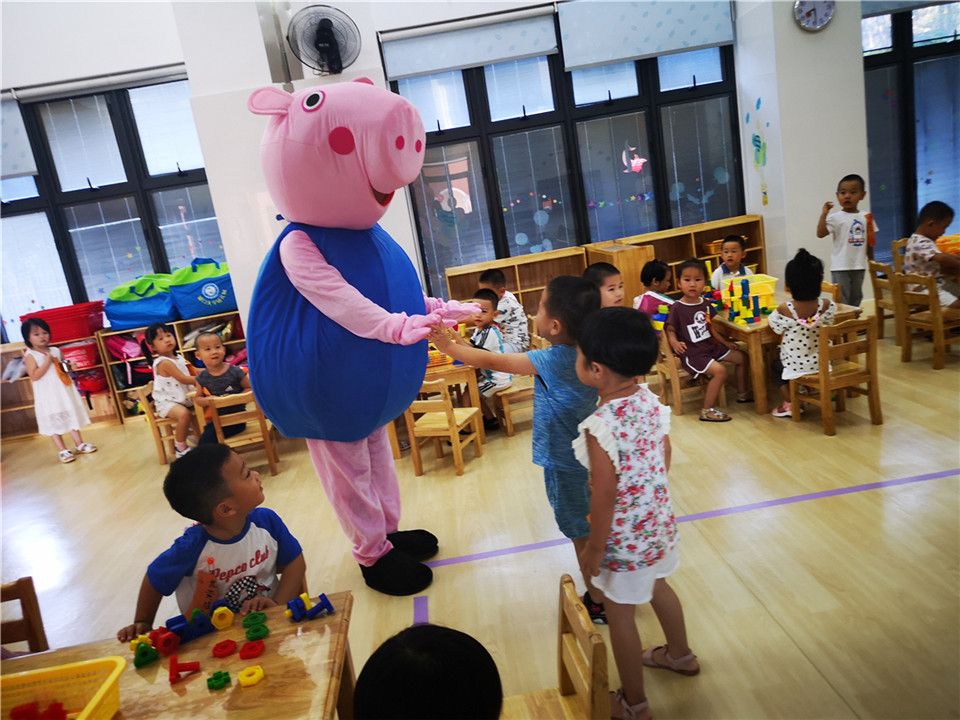 虽然可爱的萌宝们有的淡定,有的哭闹,还有的……但这一切都不用担心,老师们可是有魔法的哟,在老师的带动下,笑容慢慢的在萌宝的脸上绽放。瞧!可爱的小猪佩奇和乔治也来了,和萌宝们快乐互动。
