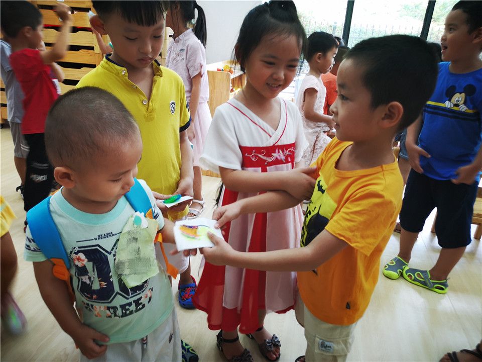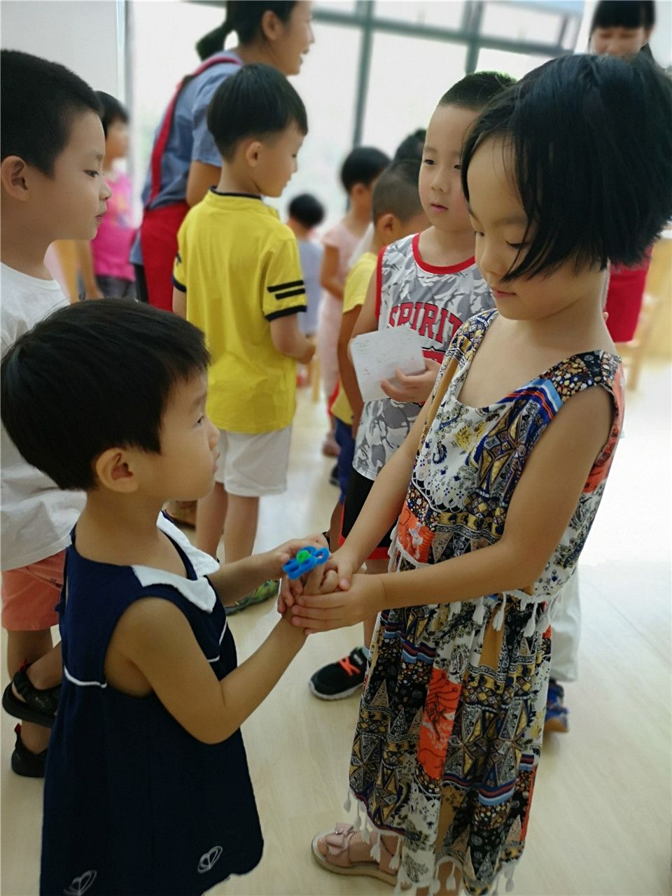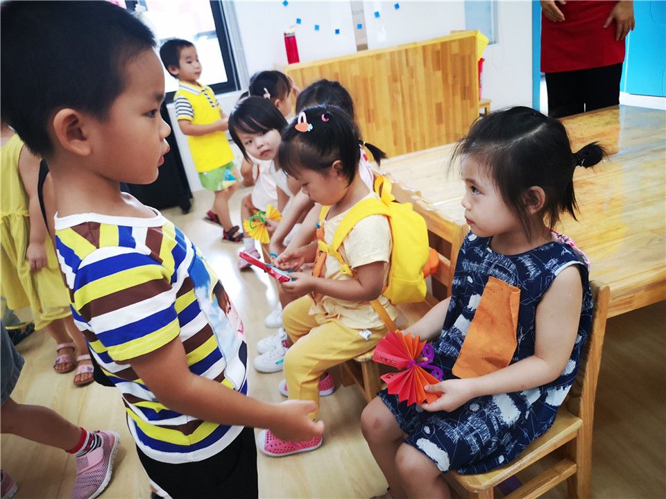于是,中大班的哥哥姐姐手拿着自制的小礼物,在老师的带领下,来到托小班,为刚入园的弟弟妹妹送上自己的祝福。
