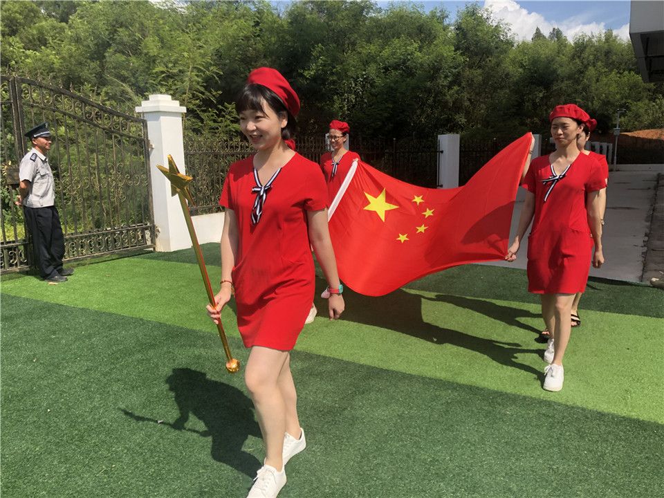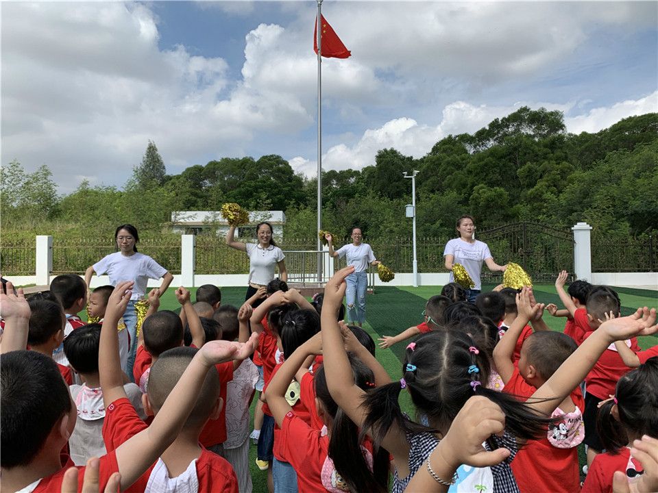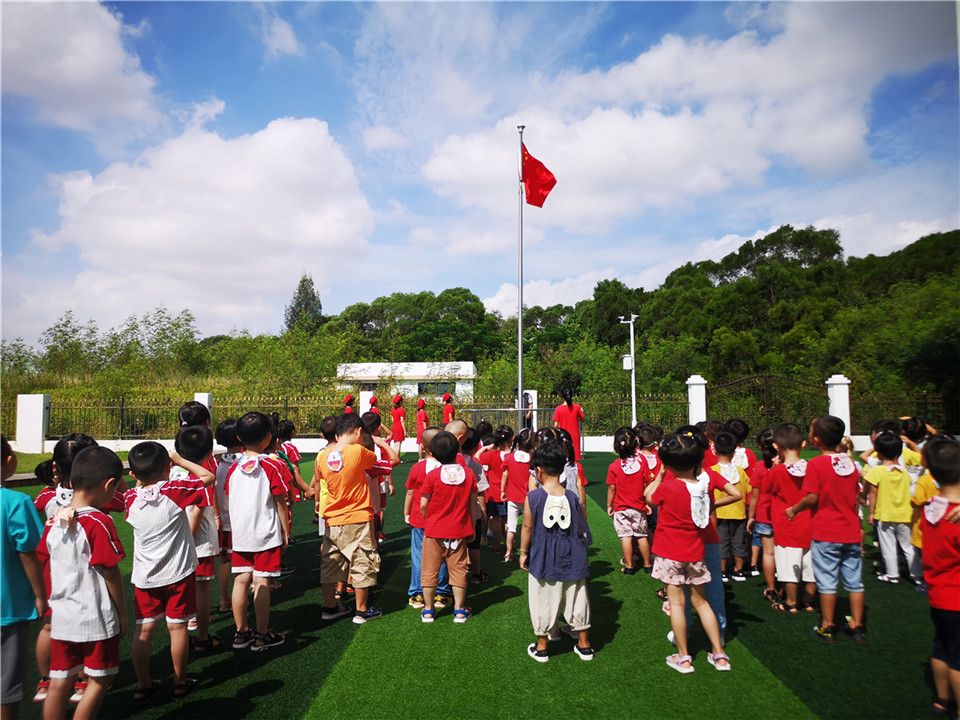 新的学期,朝气蓬勃的教师仪仗队踏着整齐步伐,步履轩昂地向升旗台走去;国歌响起,全场萌宝们伴随着乐曲唱起国歌。