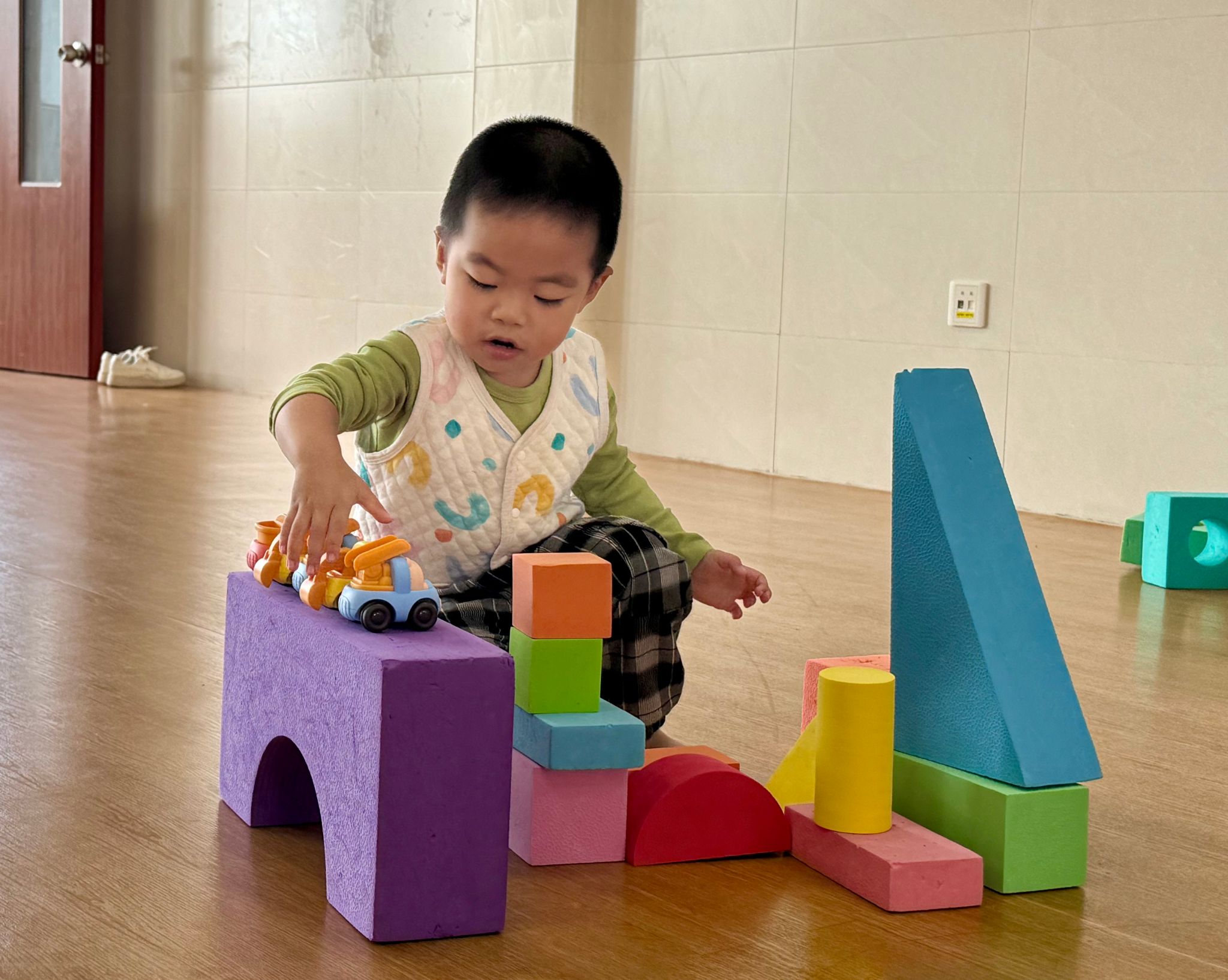 我们把秋天请进了教室。宝贝们用彩色的贴纸拼贴小鱼吐泡泡,看,宝贝们正用五彩的积木,为小汽车搭建起一条条通往秋天的彩虹路。“我的小车开过黄色的树叶啦!”创意建构区里,不再是简单的堆叠,而是充满了想象与故事——积木变成了丰收的果园,小车正忙着运送秋天的果实呢!我们还把小车开到秋天里!宝贝们驾驶着心爱的小车,在金色的世界里开启探险。"我的小车跑得最快!"他们欢呼着,车轮碾过落叶,发出沙沙的响声,那是秋天最动听的歌谣。