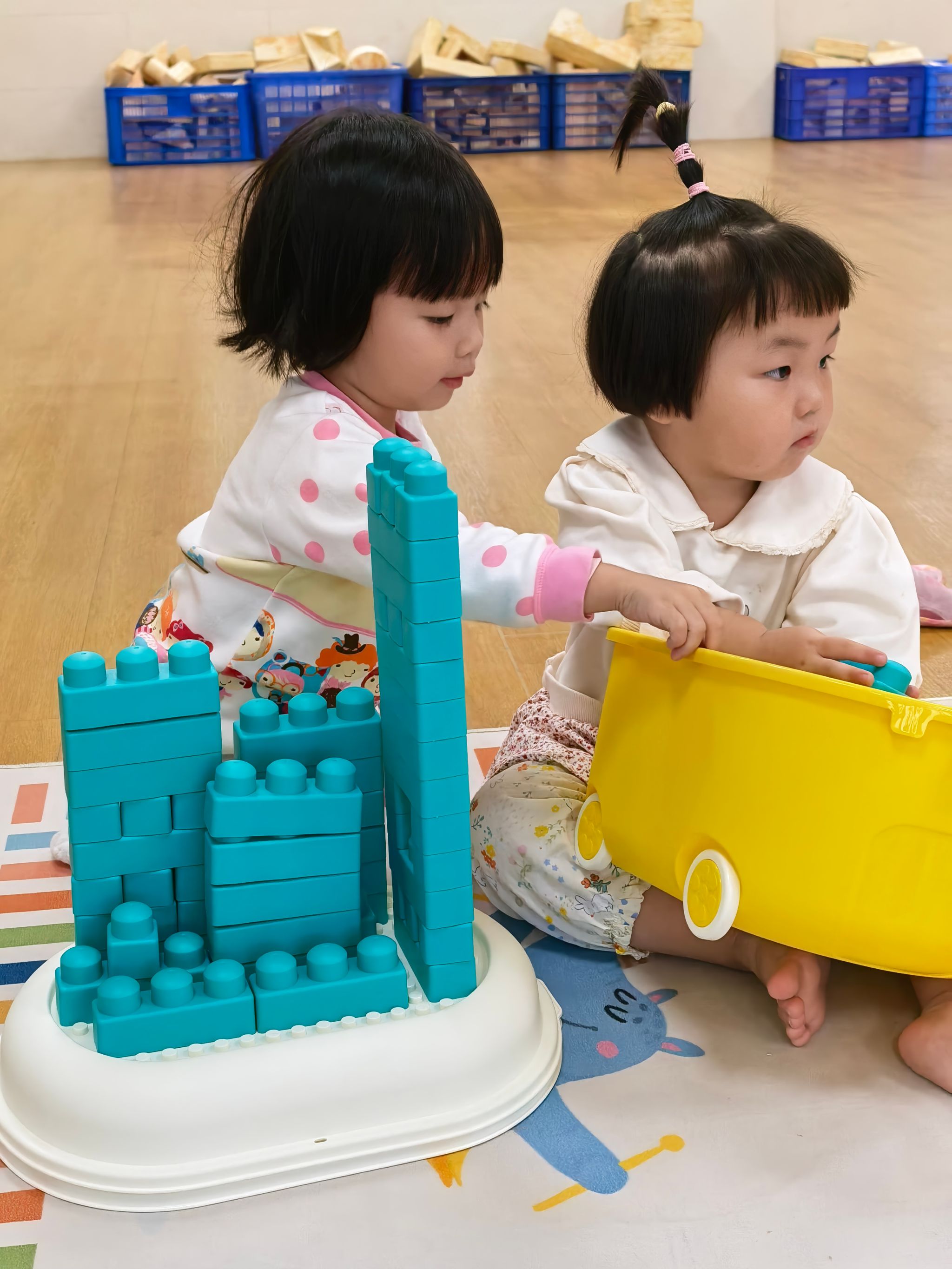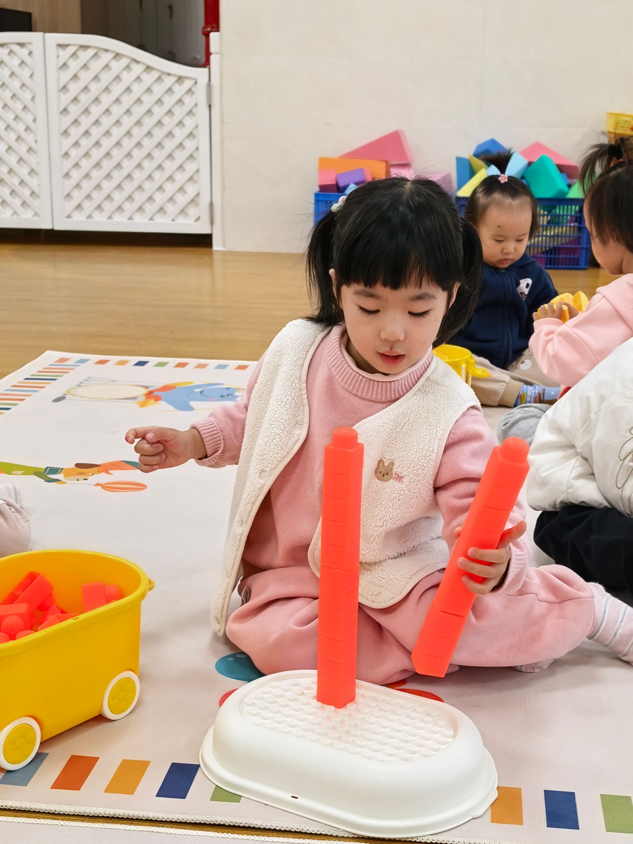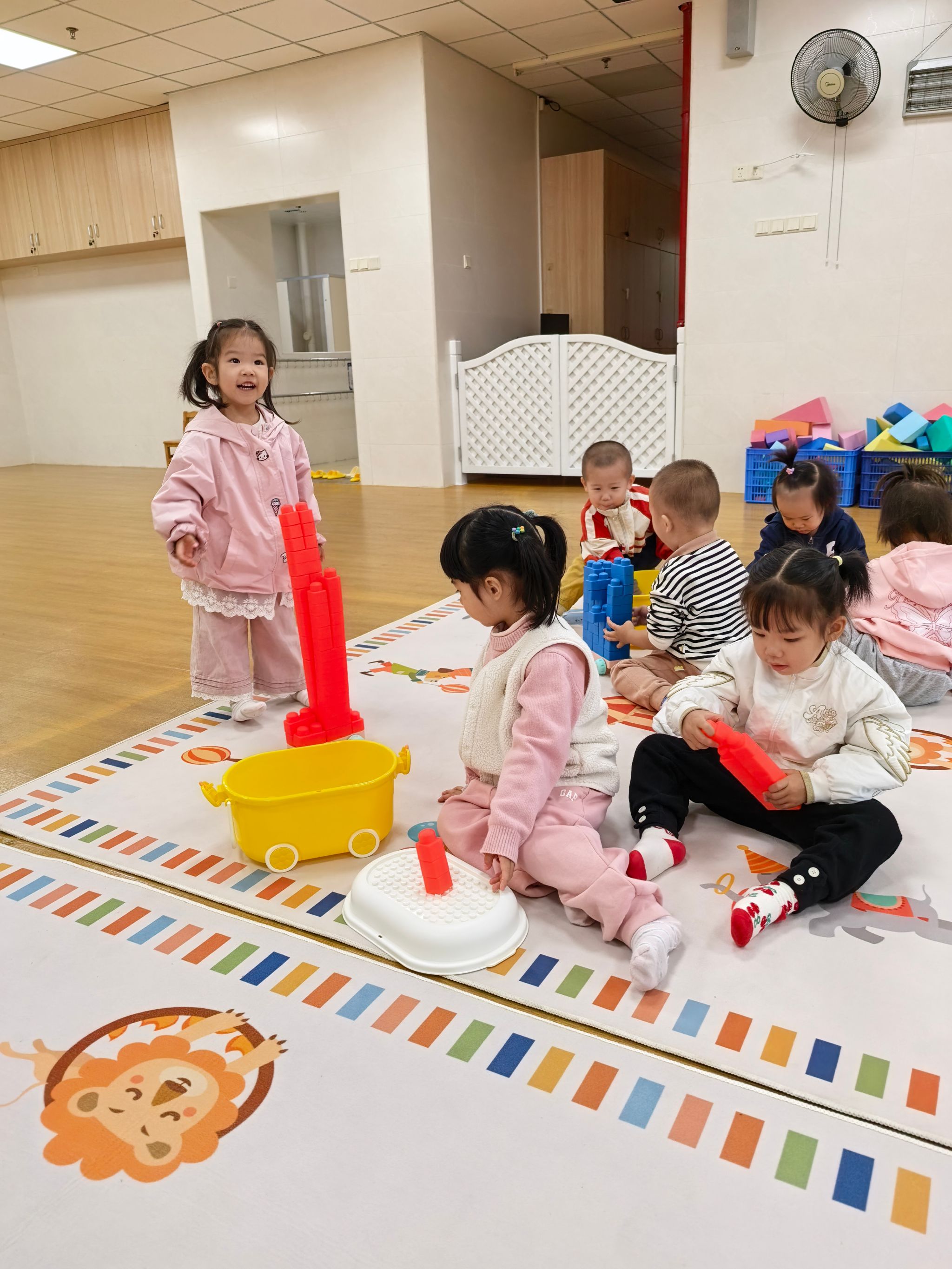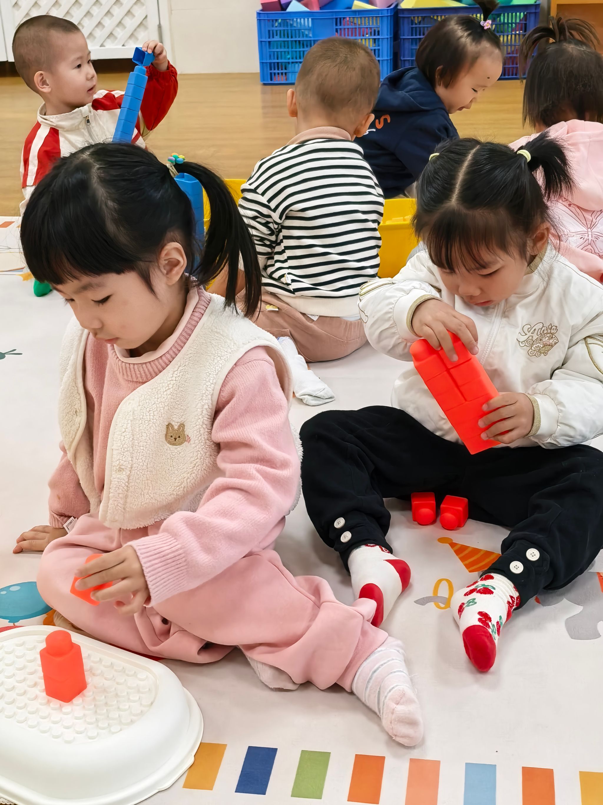 宝贝们化身“小小建筑师”,和小伙伴商量着“我们搭个小房子吧”“再搭个滑滑梯”,虽然偶尔会因为积木倒塌而沮丧,但很快又重新投搭建起来,大家一起体验创造的快乐,搭建出属于他们的奇妙世界。