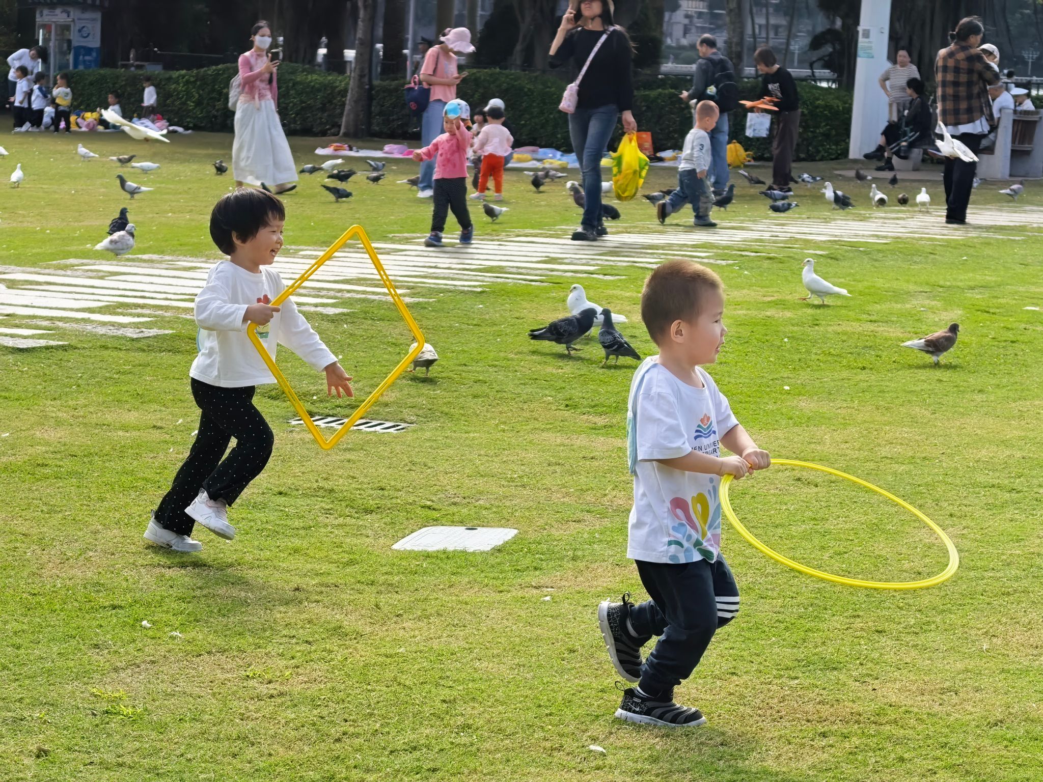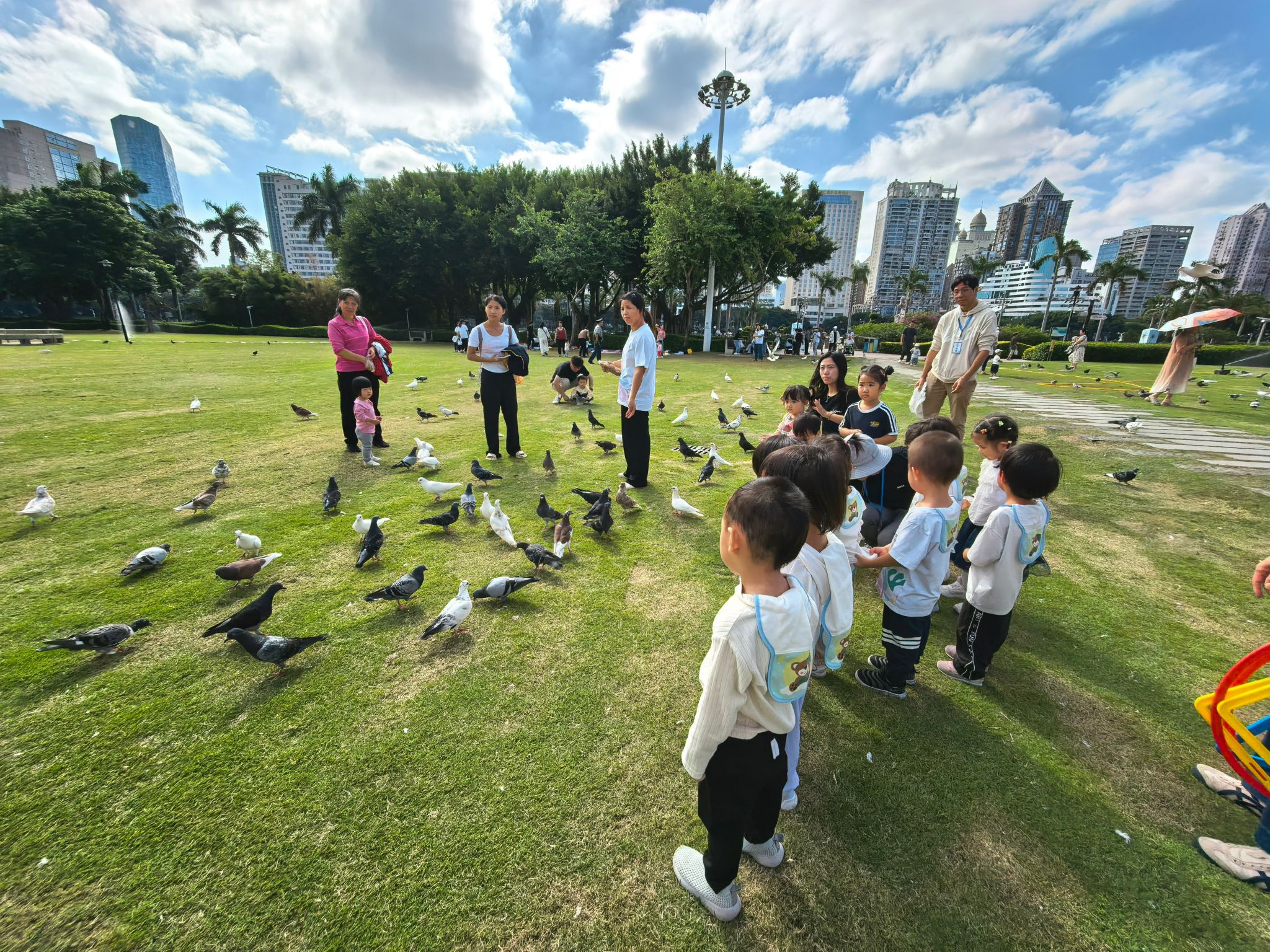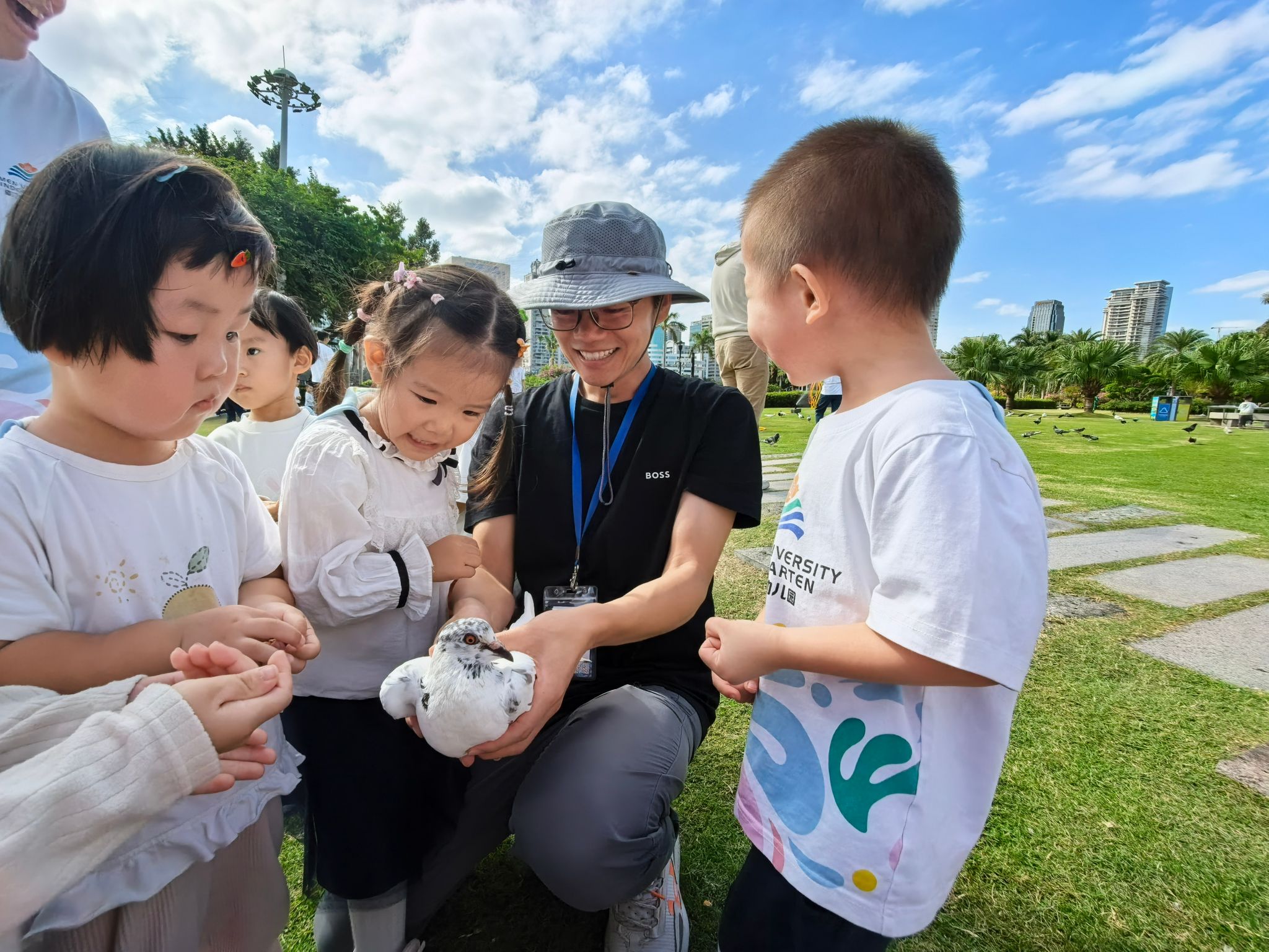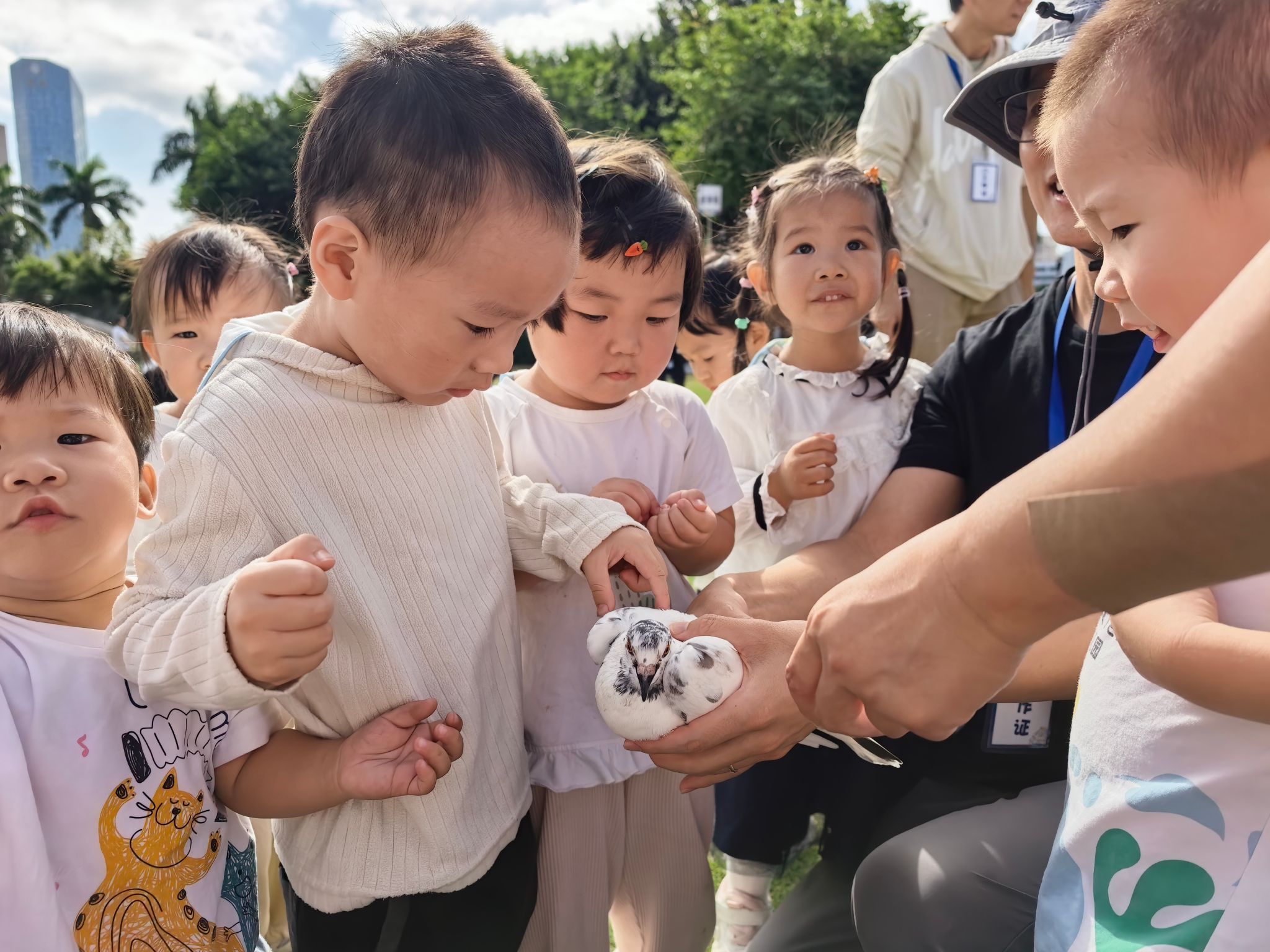 十一月终于迎来了期待已久的秋游!在公园的草坪上意外捉到一群可爱的小鸽子,宝贝们小心翼翼地伸出手抚摸小鸽子的羽毛,大家兴奋地拍手欢呼,还追着小鸽子轻轻奔跑,人与自然的亲密互动,成了秋游最温暖的画面。