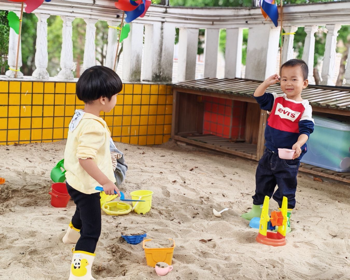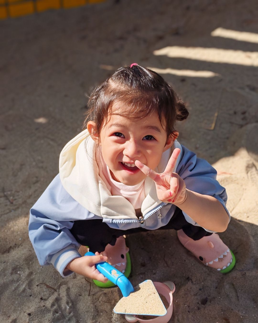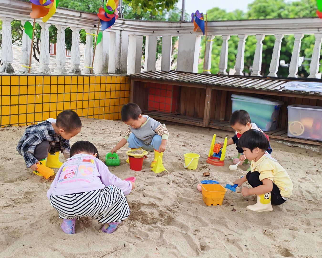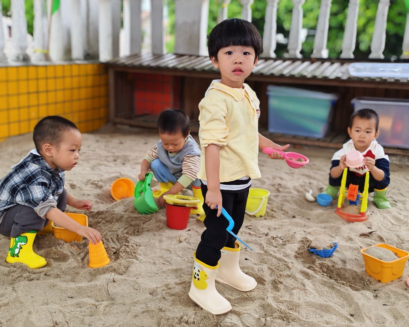 幼儿园的沙池是小朋友们的快乐星球!阳光洒在软软的沙堆上,小铲子、小水桶成了最趁手的“魔法道具”。有人蹲在地上认真堆沙堡,有人举着沙铲比出俏皮的剪刀手,还有小家伙用手捂着眼睛偷偷笑,细沙从指缝滑落,也带走不了半分欢喜。在沙池里的每一刻,都是孩子们用童真编织的美好瞬间。