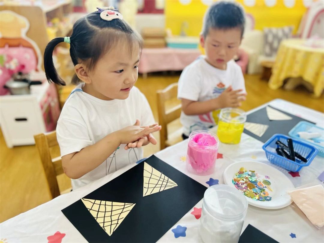 炎热的夏天,当然少不了美味的冰淇淋!宝贝们在之前的区域活动中就表现出了对冰淇淋的慢慢喜爱,在娃娃家“品尝”,在美工区绘画……