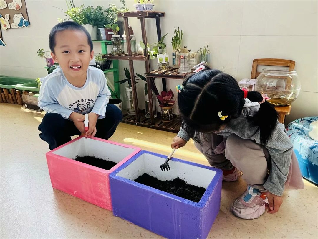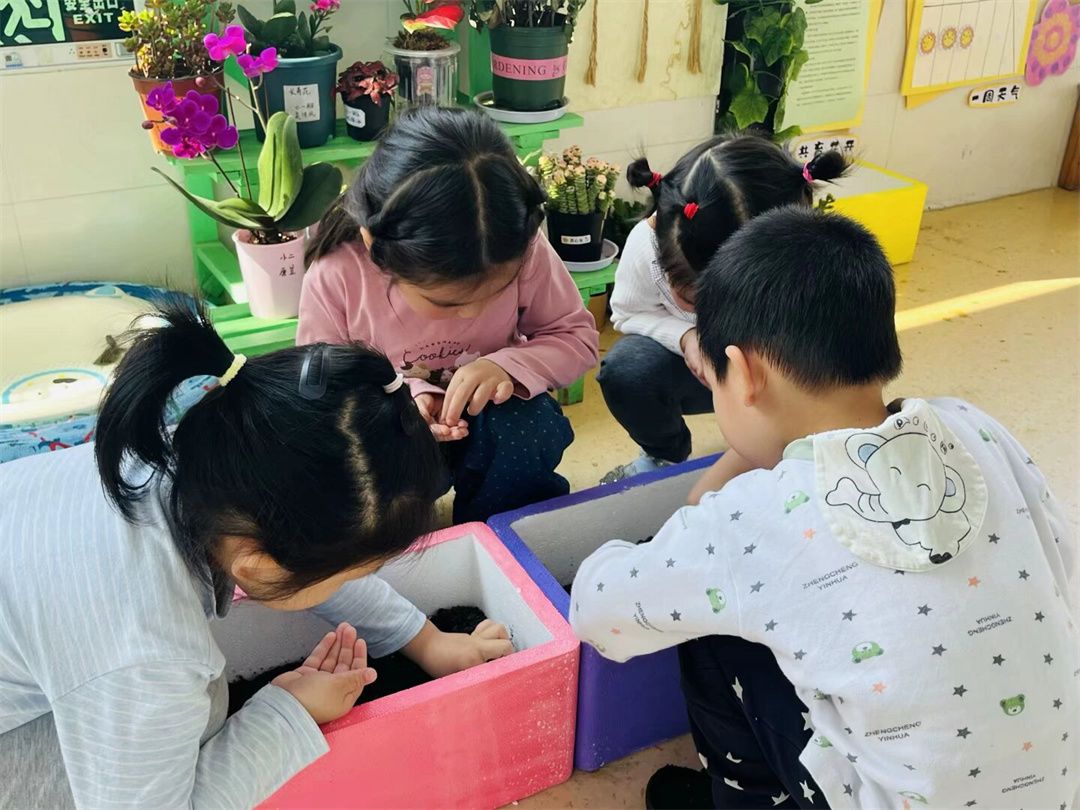 “老师,花儿为什么会开呀?”“花儿需要吃饭吗?”孩子们的问题一个接着一个。为了满足他们的好奇心,我们一起阅读了绘本《彩虹色的花》。通过生动的画面和有趣的故事,孩子们了解到花儿从种子发芽、生长到开花的过程。为了让幼儿更加了解植物的生长过程,我们一起在植物角种下了“彩虹色的花”——格桑花种子。每天,孩子们都会去观察,种子有没有发芽,轮流给种子浇水,观察它有没有变化。