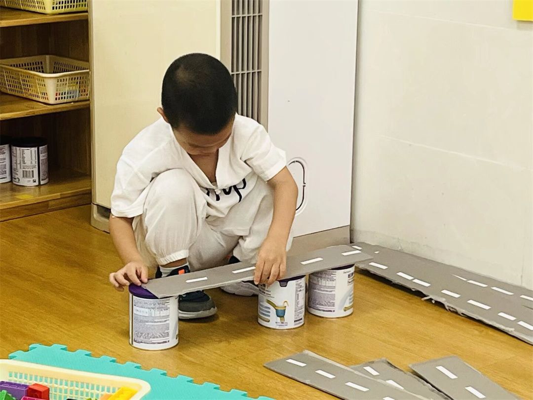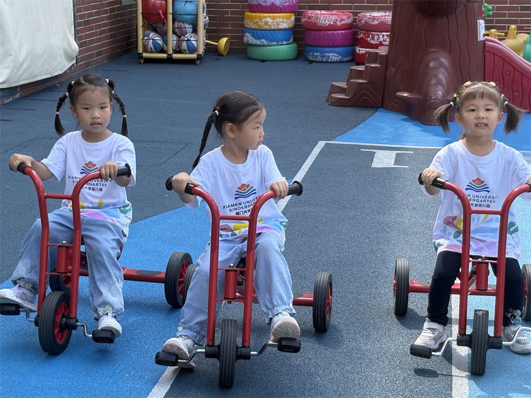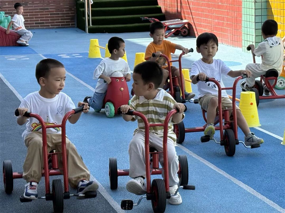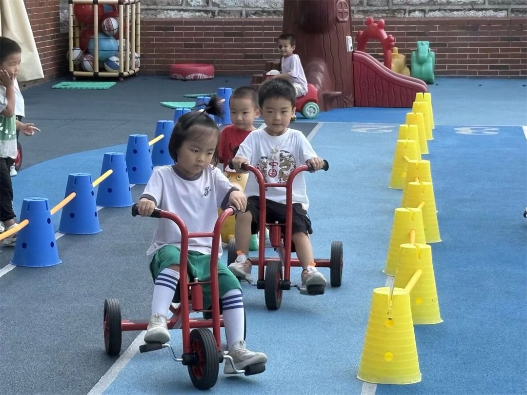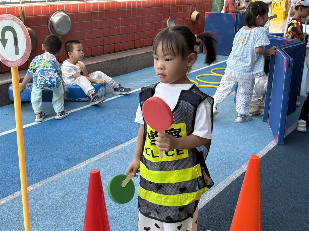 在欢乐的自主游戏时光里,你们变身成神气的小司机,快乐的骑车在马路上;或是当起认真负责的小交警,有模有样地指挥着车辆通行。