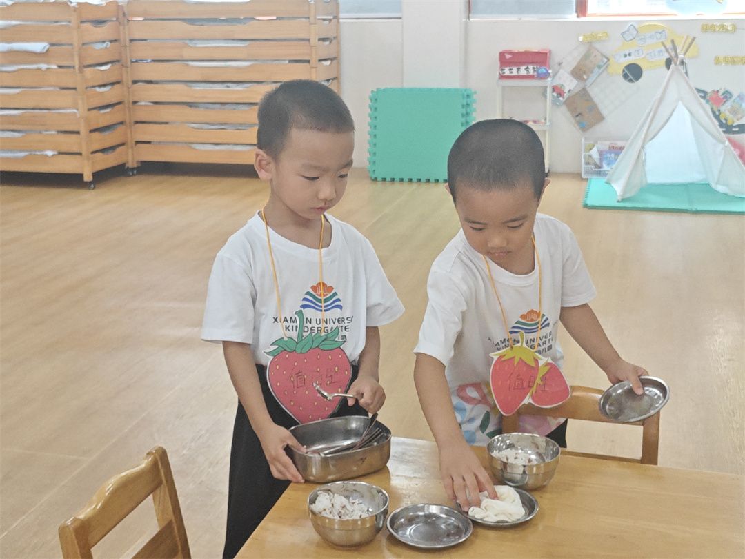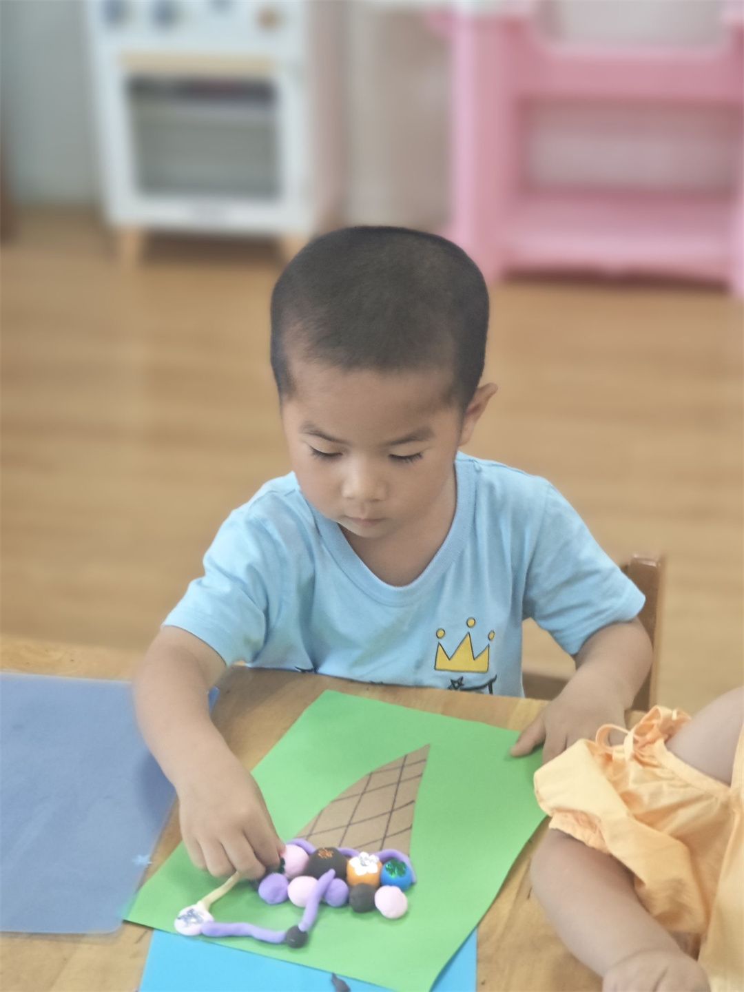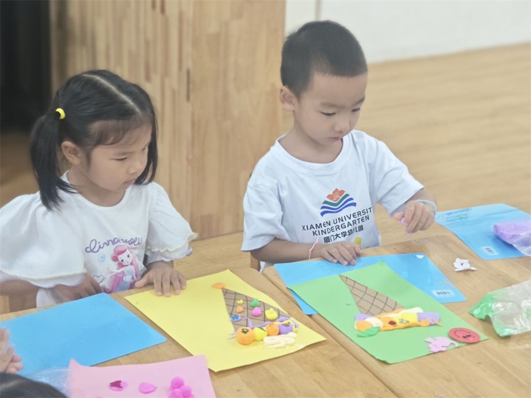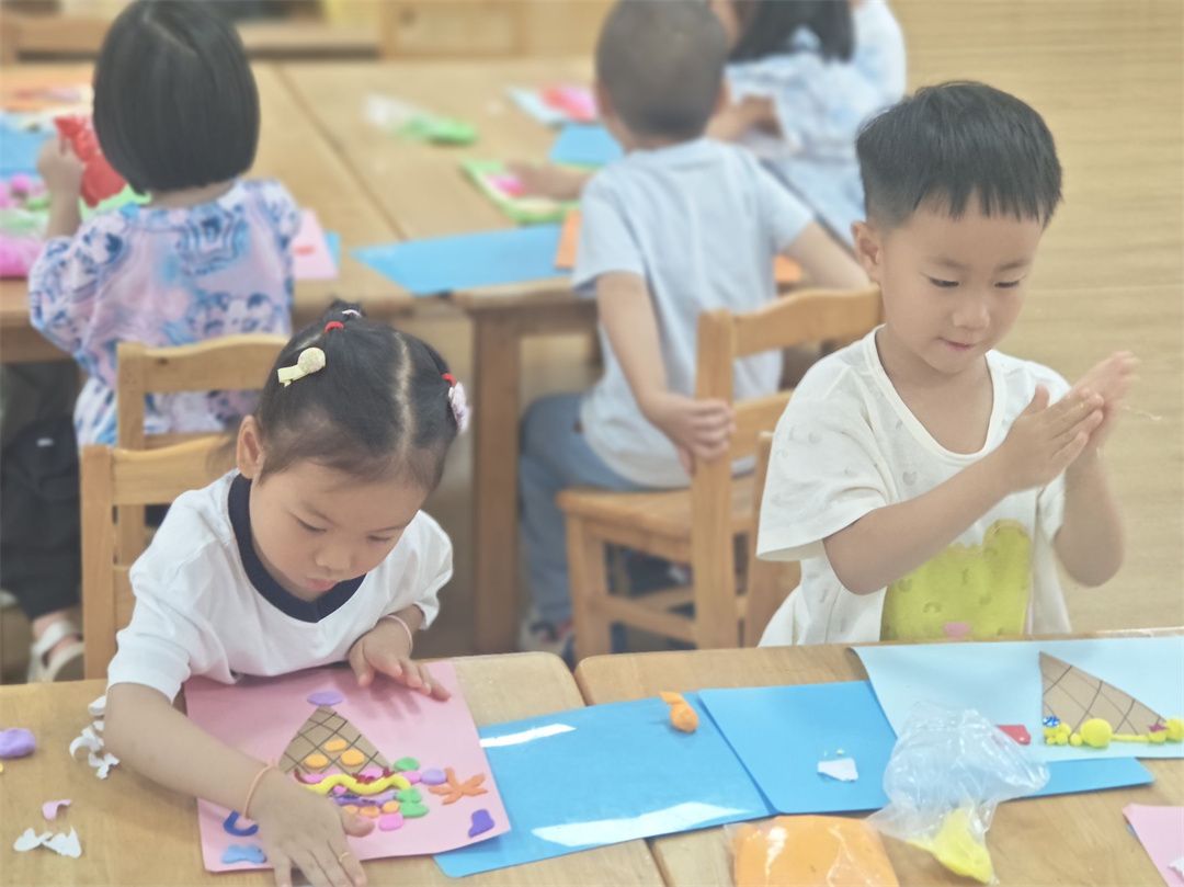 最甜蜜的莫过于我们的艺术活动《美味的冰淇淋》了。孩子们用超轻黏土创作出各种口味的冰淇淋:有彩虹漩涡的、草莓夹心的、巧克力脆皮的...舒曦做了个会唱歌的冰淇淋,她认真地解释:这个是音乐口味,吃了就会唱歌哦!看着这些充满想象力的作品,老师都忍不住想尝一口呢!