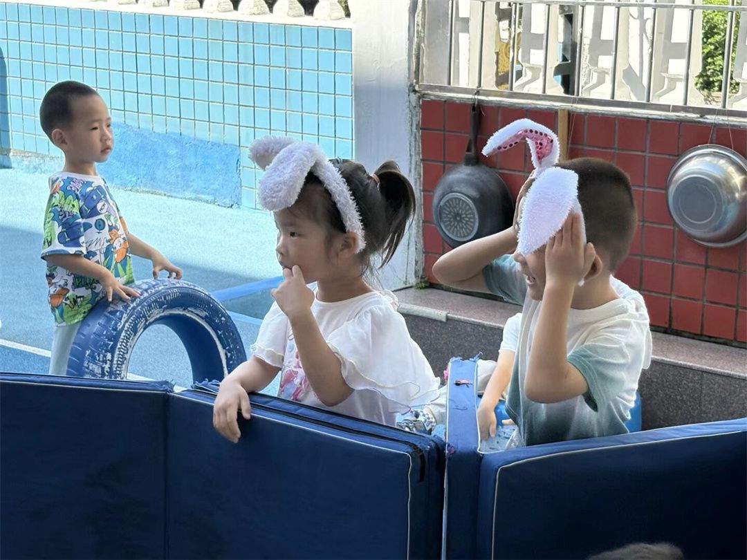 时而化作蹦蹦跳跳的小兔子,在活动区欢快穿梭;时而又变成凶猛的大灰狼,发出可爱的嗷呜声追逐玩耍。