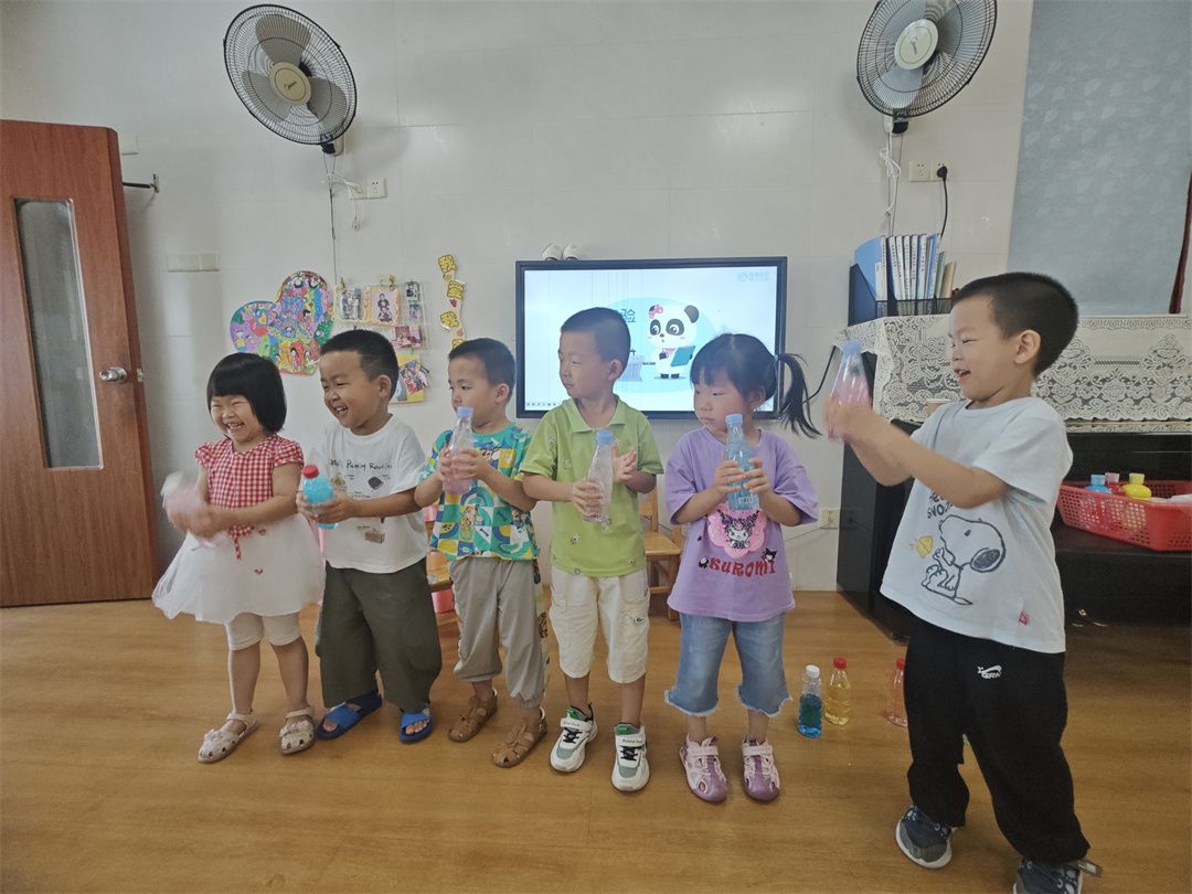 最神奇的莫过于我们的科学活动《会变色的瓶宝宝》了。当孩子们摇晃着装有颜色宝宝的瓶子,看着液体在加入不同溶液后变出彩虹般的颜色时,教室里响起此起彼伏的惊叹声。老师,我的瓶宝宝变成粉色啦!、哇!我的变成蓝色了!那一双双发亮的小眼睛里,盛满了对世界的好奇。活动结束后,小朋友们还自发组成了颜色侦探队,在教室里寻找会变色的物品呢!