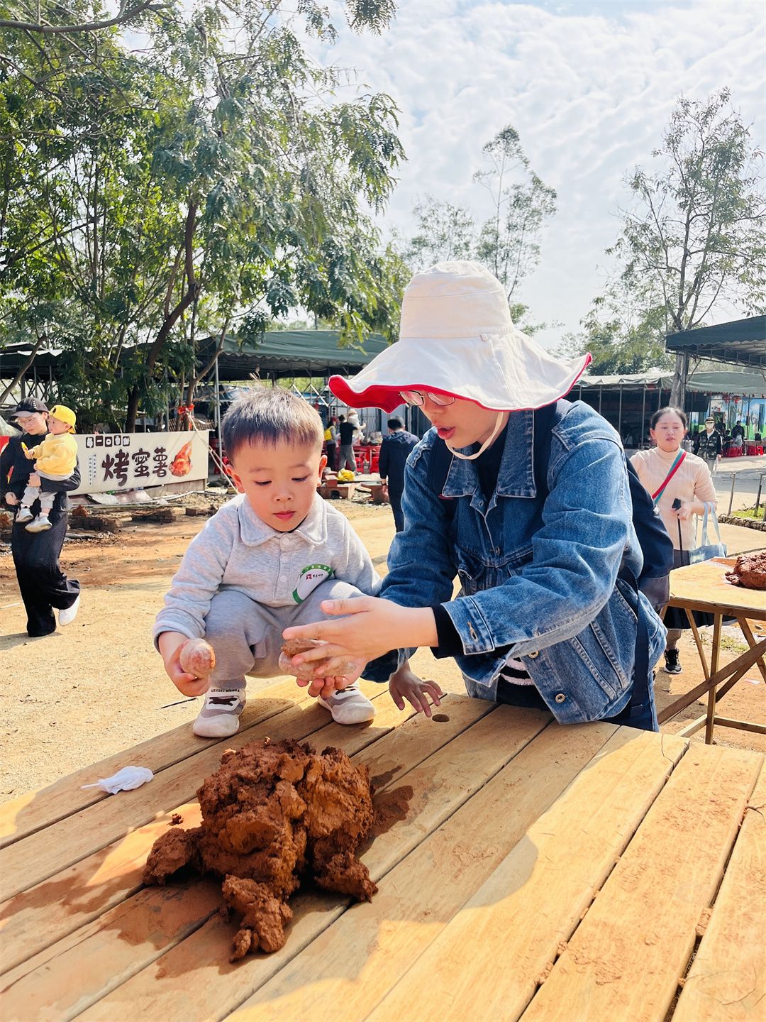 泥土与慢火的结合,体验不一样的红泥烤红薯,孩子们选好自己需要的红薯,挽上袖子和家长们一起给红薯”穿“上外衣。