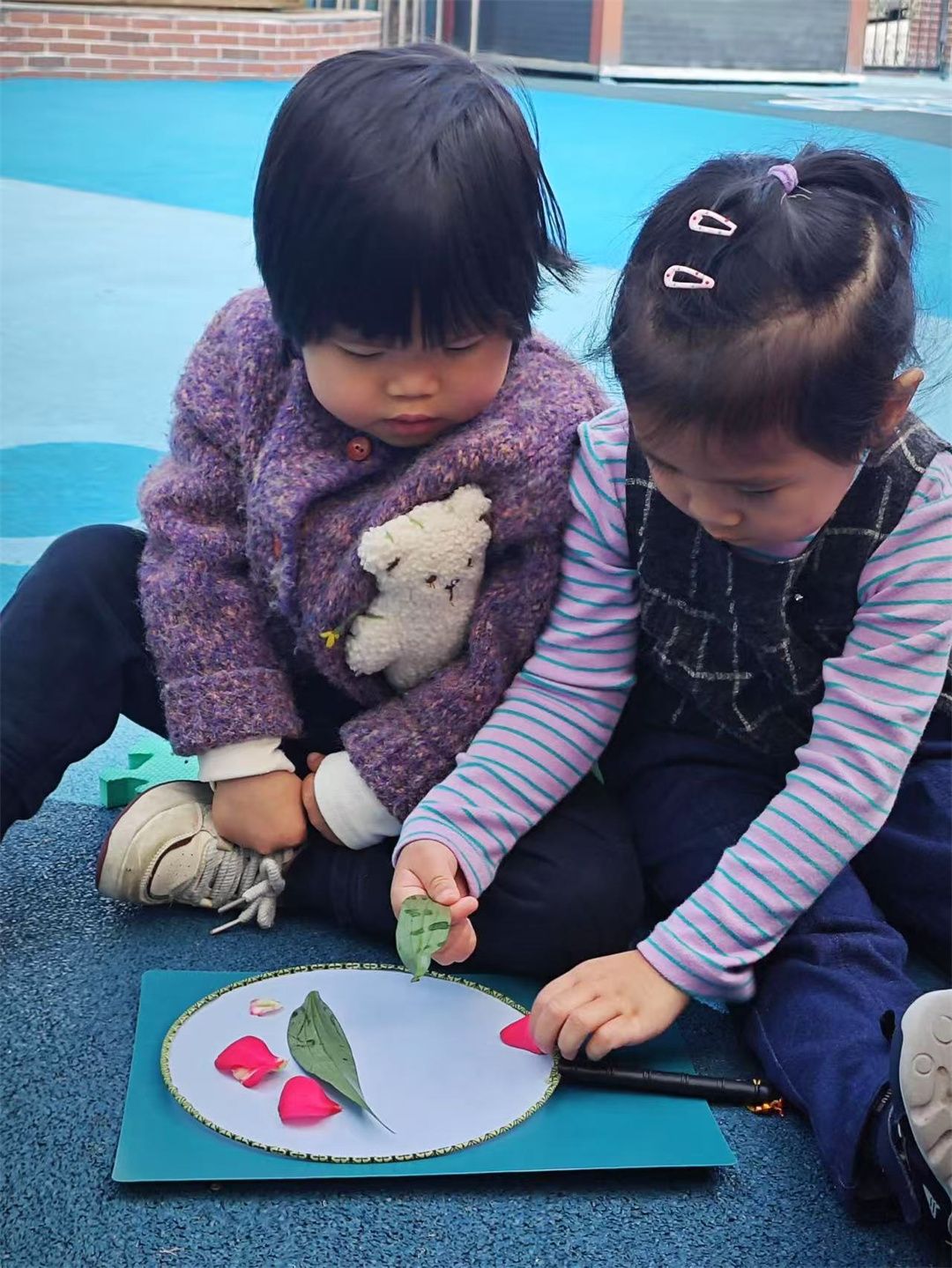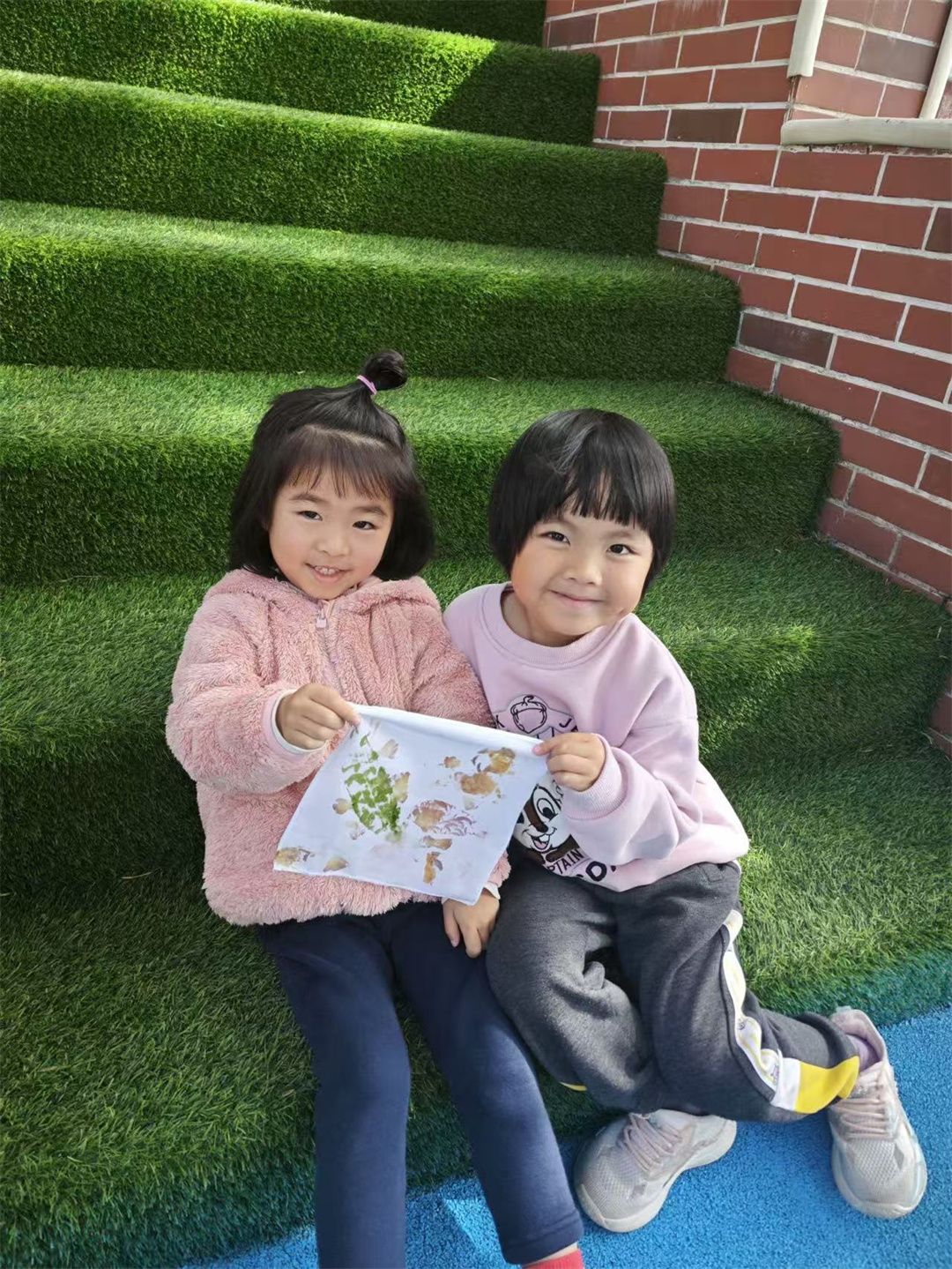 柔和的春日照耀下,小七班的宝贝正沉浸在植物敲染的欢乐中。他们用嫩绿的树叶与缤纷的花瓣作为自然的画笔,轻轻敲打在白纸上,留下春天的印记。每一次敲打都充满了期待,孩子们专注的眼神中闪烁着对大自然的好奇与热爱。这不仅是一场艺术创作,更是一次亲近自然、感受生命美好的奇妙旅程。