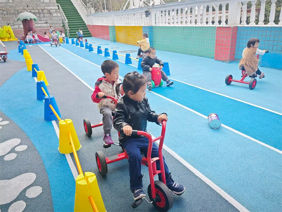 春光明媚,幼儿园的操场上洋溢着欢声笑语。宝贝们有的在做游戏,追逐嬉戏,笑声连连;有的手握飞机模型,翱翔蓝天,放飞梦想;还有的推着小车,步履蹒跚却满脸认真。春天的户外活动,让孩子们尽享温暖与自由,快乐成长。