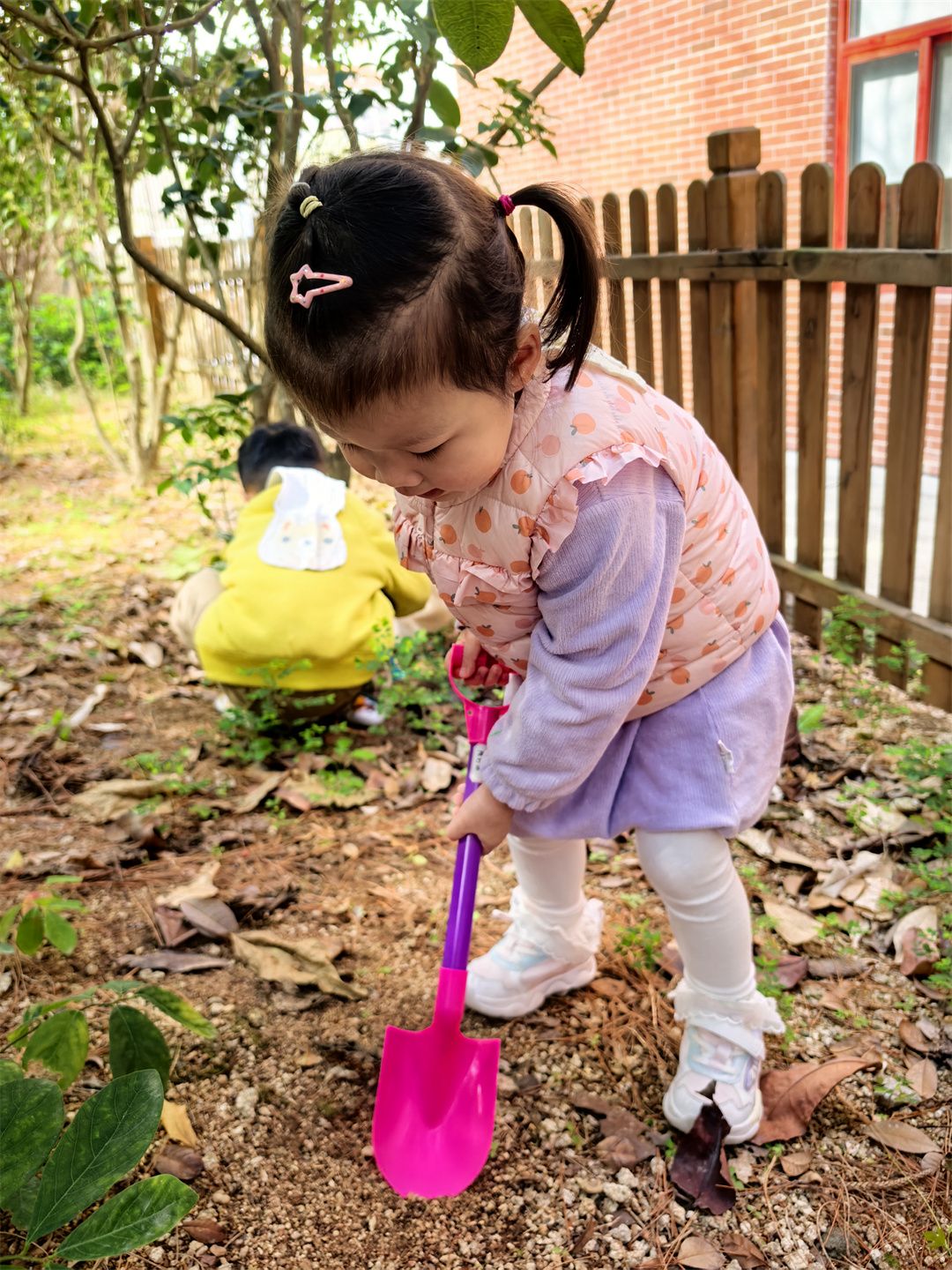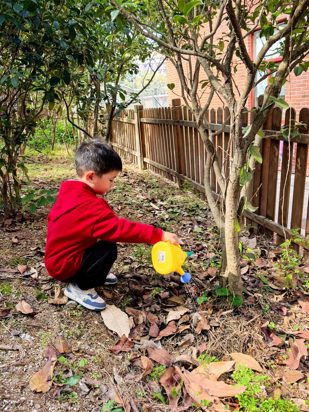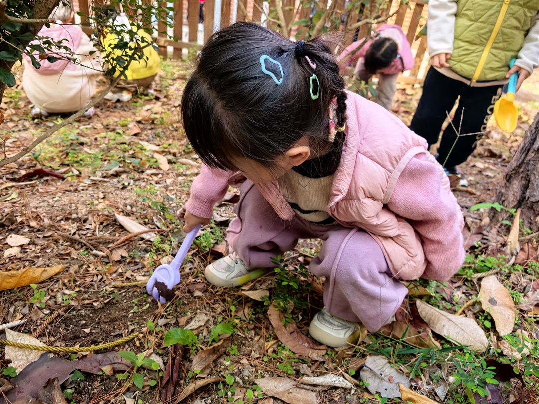 紧接着,小朋友们来到户外的小草地,开启了植树活动。大家分成小组,领到小树苗和工具后就迫不及待地行动起来。有的小朋友用小耙子认真松土,有的小朋友卖力地铲土挖洞,还有的小朋友阳阳小心翼翼地给埋好的种子浇水,嘴里还念叨着:“小树苗,你要快快长大,变得高高的!”不一会儿,小草地上就种满了小树种子,小朋友们满心期待这它们发芽长大。