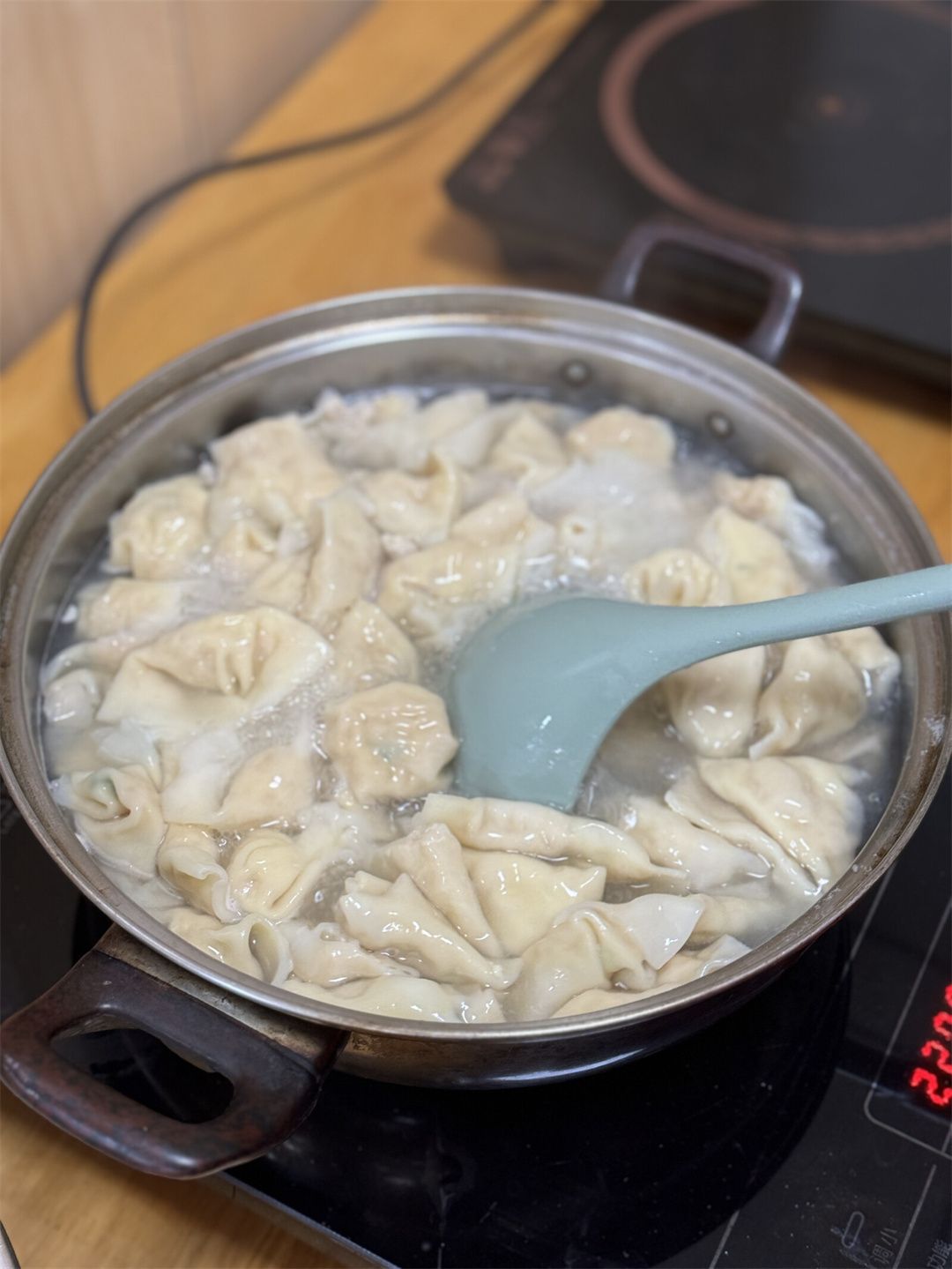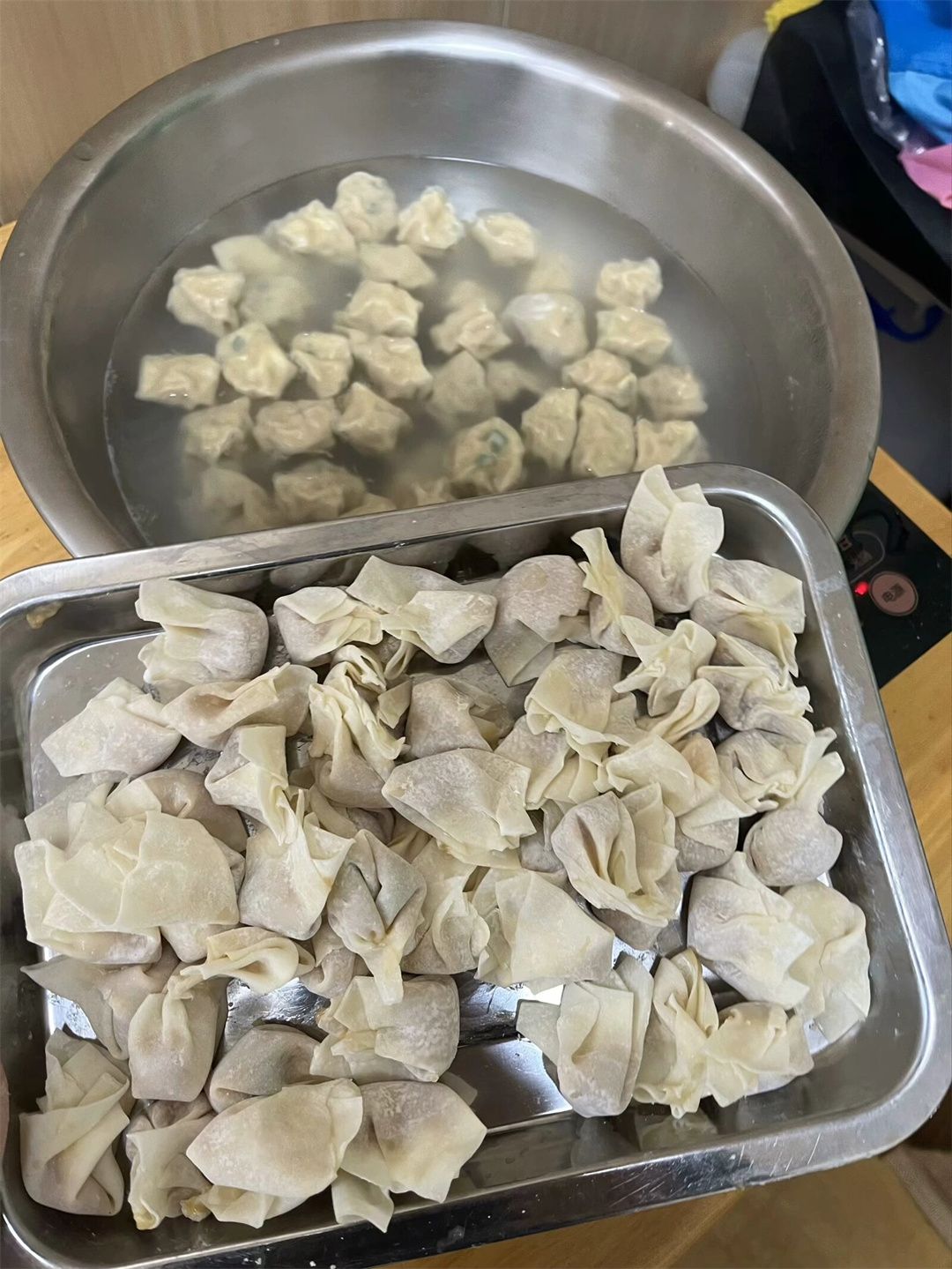 不一会儿桌子上就变出了一个个可可爱爱的扁食,香喷喷的扁食出锅喽!今天我们要把它们吃光光!